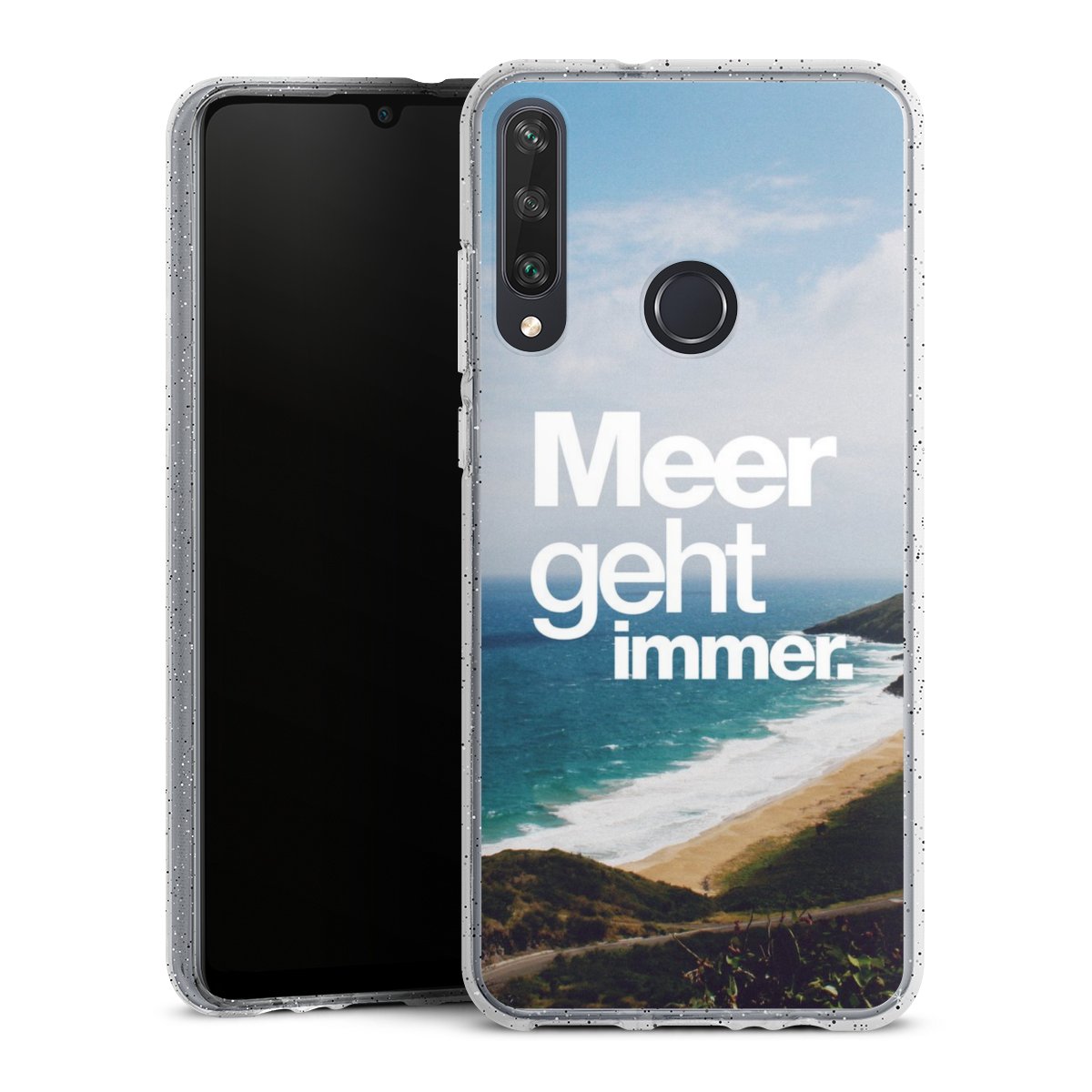 Die flexible Silikonhülle besteht aus robustem TPU (thermoplastisches Polyurethan) mit eingearbeiteten Glitzerpartikeln. Durch das langlebige, bruchsichere Material ist die Hülle biegsam und formbeständig zugleich. Die funkelnde Variante unter unseren Handyhüllen liegt griffig in der Hand und ist in Transparent mit silbernem Glitzer erhältlich.