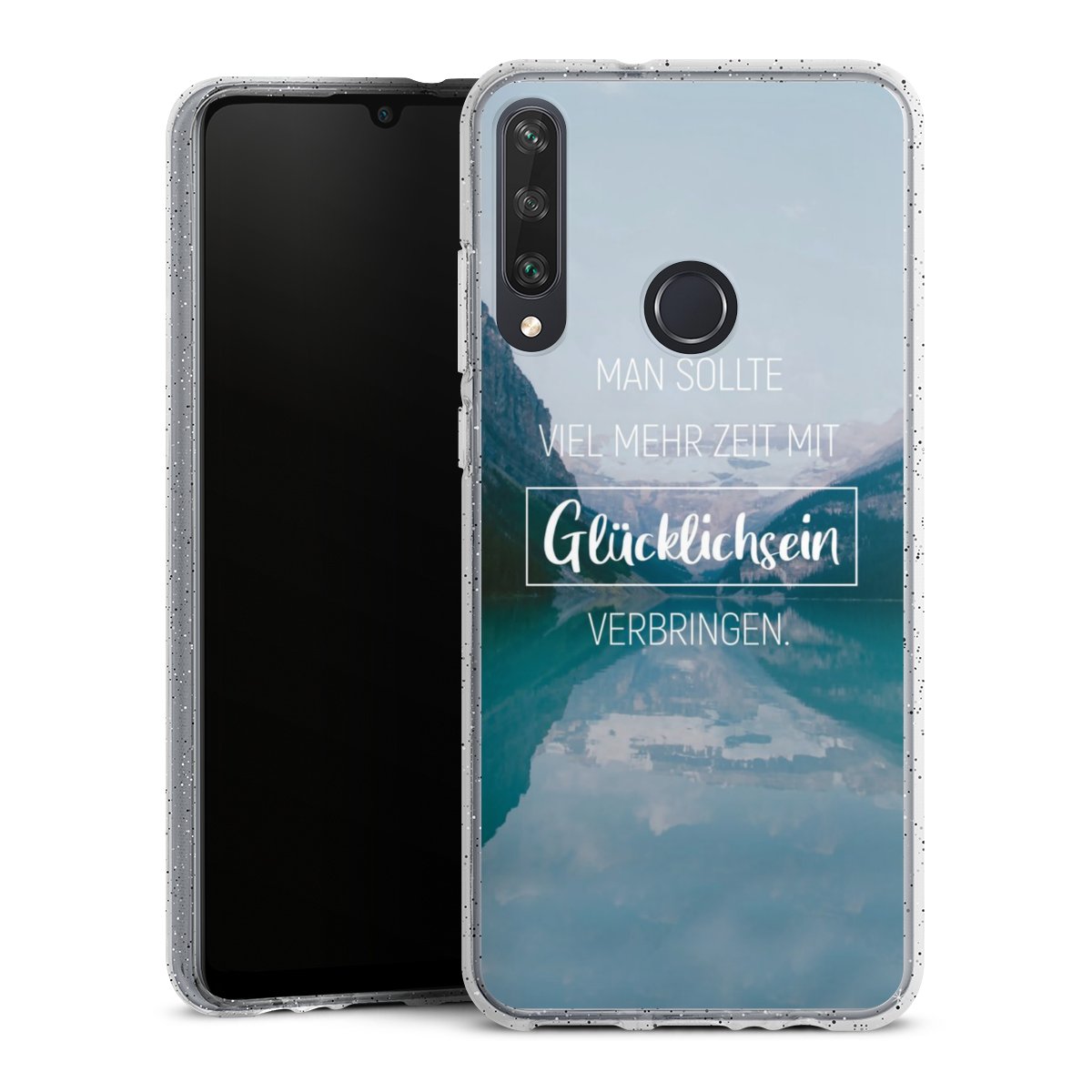 Die flexible Silikonhülle besteht aus robustem TPU (thermoplastisches Polyurethan) mit eingearbeiteten Glitzerpartikeln. Durch das langlebige, bruchsichere Material ist die Hülle biegsam und formbeständig zugleich. Die funkelnde Variante unter unseren Handyhüllen liegt griffig in der Hand und ist in Transparent mit silbernem Glitzer erhältlich.