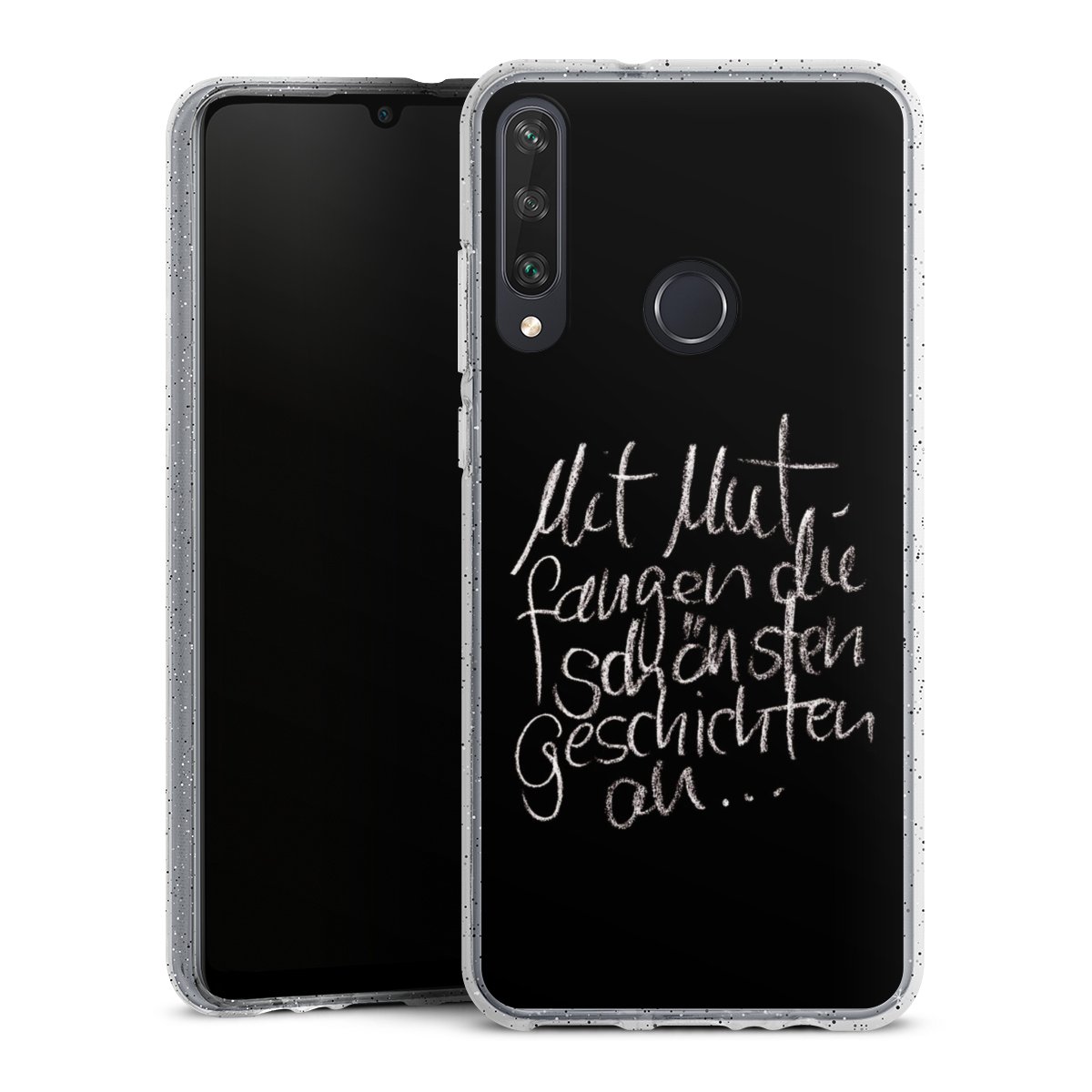 Die flexible Silikonhülle besteht aus robustem TPU (thermoplastisches Polyurethan) mit eingearbeiteten Glitzerpartikeln. Durch das langlebige, bruchsichere Material ist die Hülle biegsam und formbeständig zugleich. Die funkelnde Variante unter unseren Handyhüllen liegt griffig in der Hand und ist in Transparent mit silbernem Glitzer erhältlich.