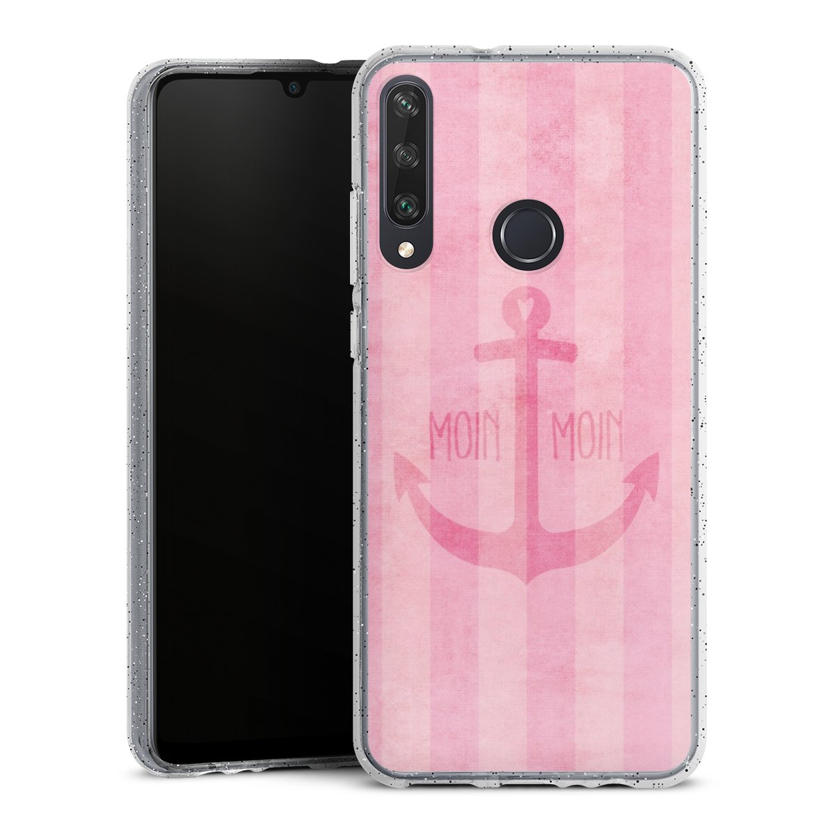 Die flexible Silikonhülle besteht aus robustem TPU (thermoplastisches Polyurethan) mit eingearbeiteten Glitzerpartikeln. Durch das langlebige, bruchsichere Material ist die Hülle biegsam und formbeständig zugleich. Die funkelnde Variante unter unseren Handyhüllen liegt griffig in der Hand und ist in Transparent mit silbernem Glitzer erhältlich.