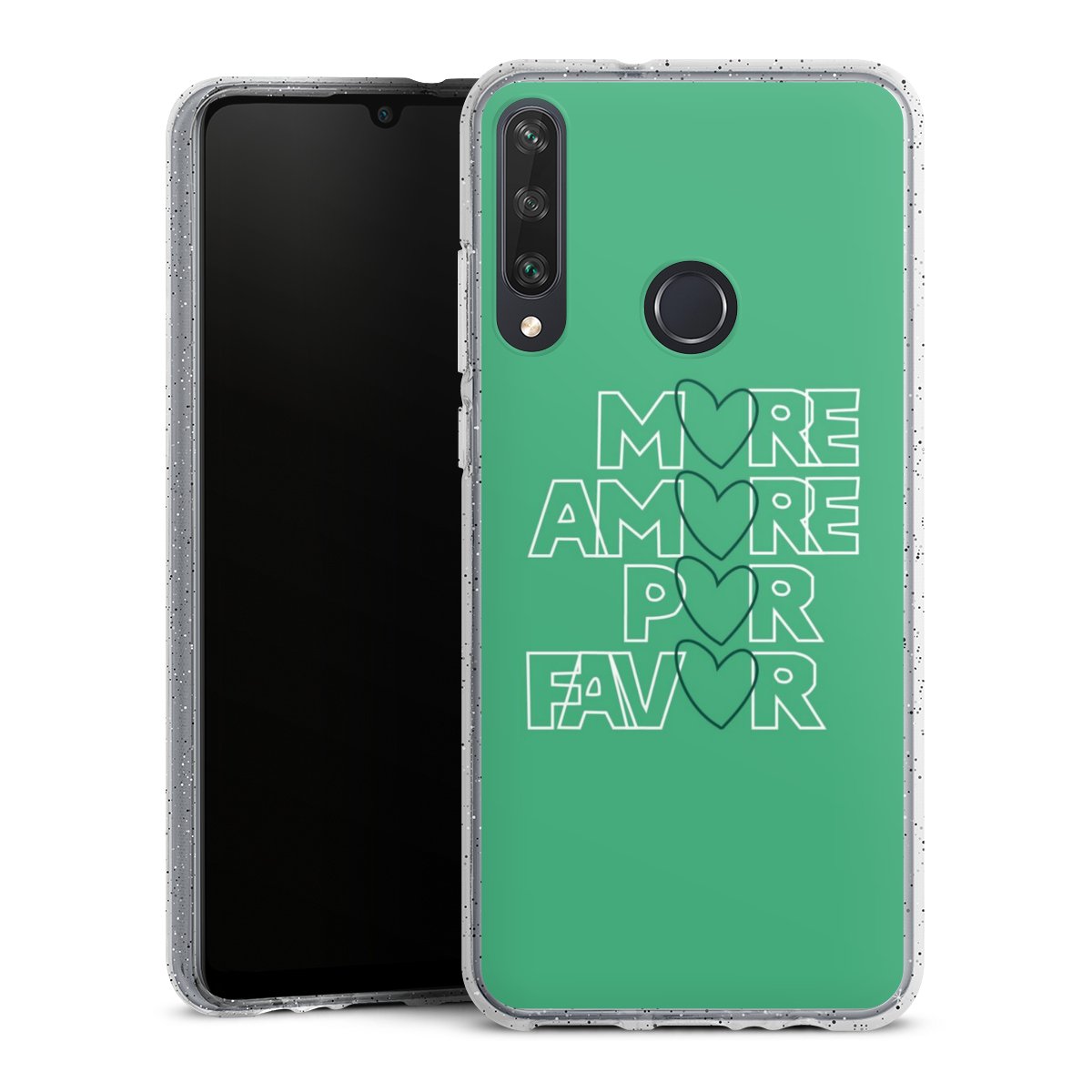 Die flexible Silikonhülle besteht aus robustem TPU (thermoplastisches Polyurethan) mit eingearbeiteten Glitzerpartikeln. Durch das langlebige, bruchsichere Material ist die Hülle biegsam und formbeständig zugleich. Die funkelnde Variante unter unseren Handyhüllen liegt griffig in der Hand und ist in Transparent mit silbernem Glitzer erhältlich.