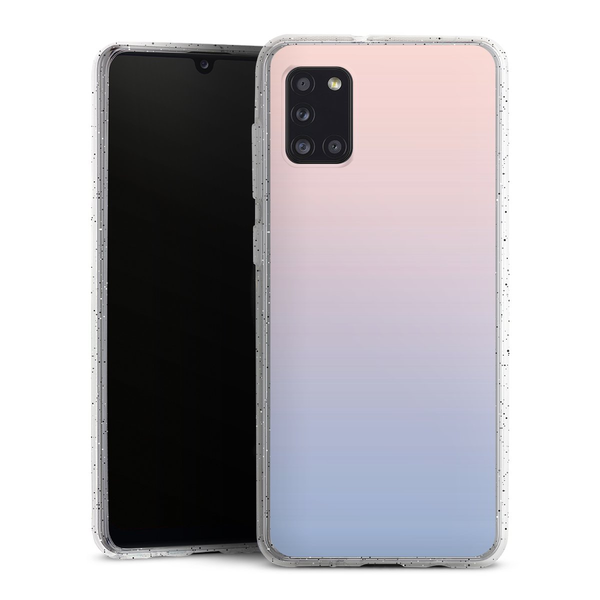 Die flexible Silikonhülle besteht aus robustem TPU (thermoplastisches Polyurethan) mit eingearbeiteten Glitzerpartikeln. Durch das langlebige, bruchsichere Material ist die Hülle biegsam und formbeständig zugleich. Die funkelnde Variante unter unseren Handyhüllen liegt griffig in der Hand und ist in Transparent mit silbernem Glitzer erhältlich.