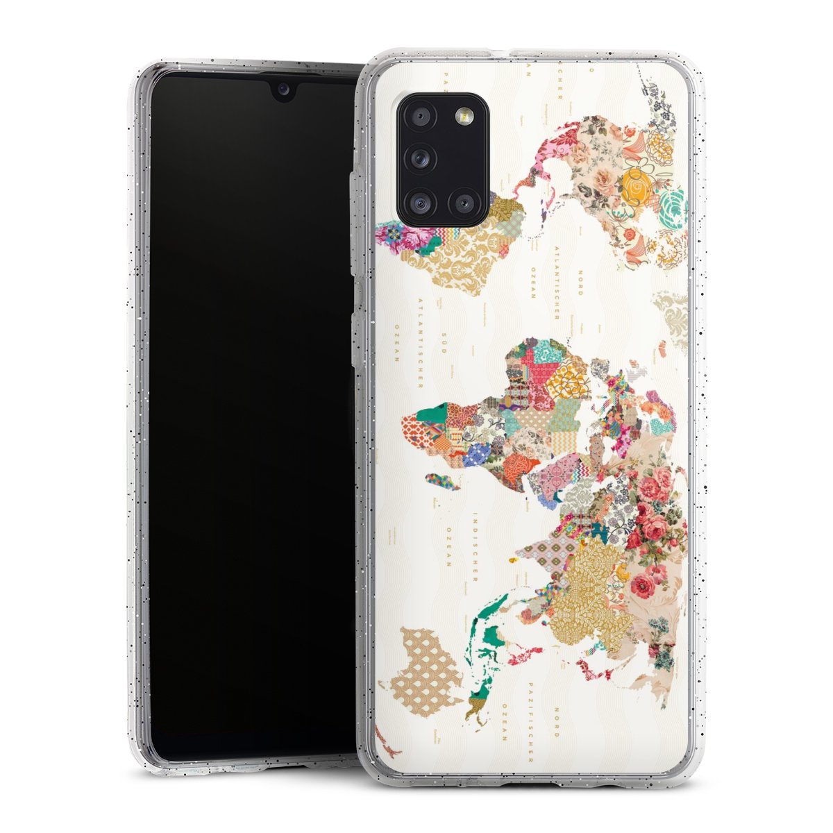 Die flexible Silikonhülle besteht aus robustem TPU (thermoplastisches Polyurethan) mit eingearbeiteten Glitzerpartikeln. Durch das langlebige, bruchsichere Material ist die Hülle biegsam und formbeständig zugleich. Die funkelnde Variante unter unseren Handyhüllen liegt griffig in der Hand und ist in Transparent mit silbernem Glitzer erhältlich.