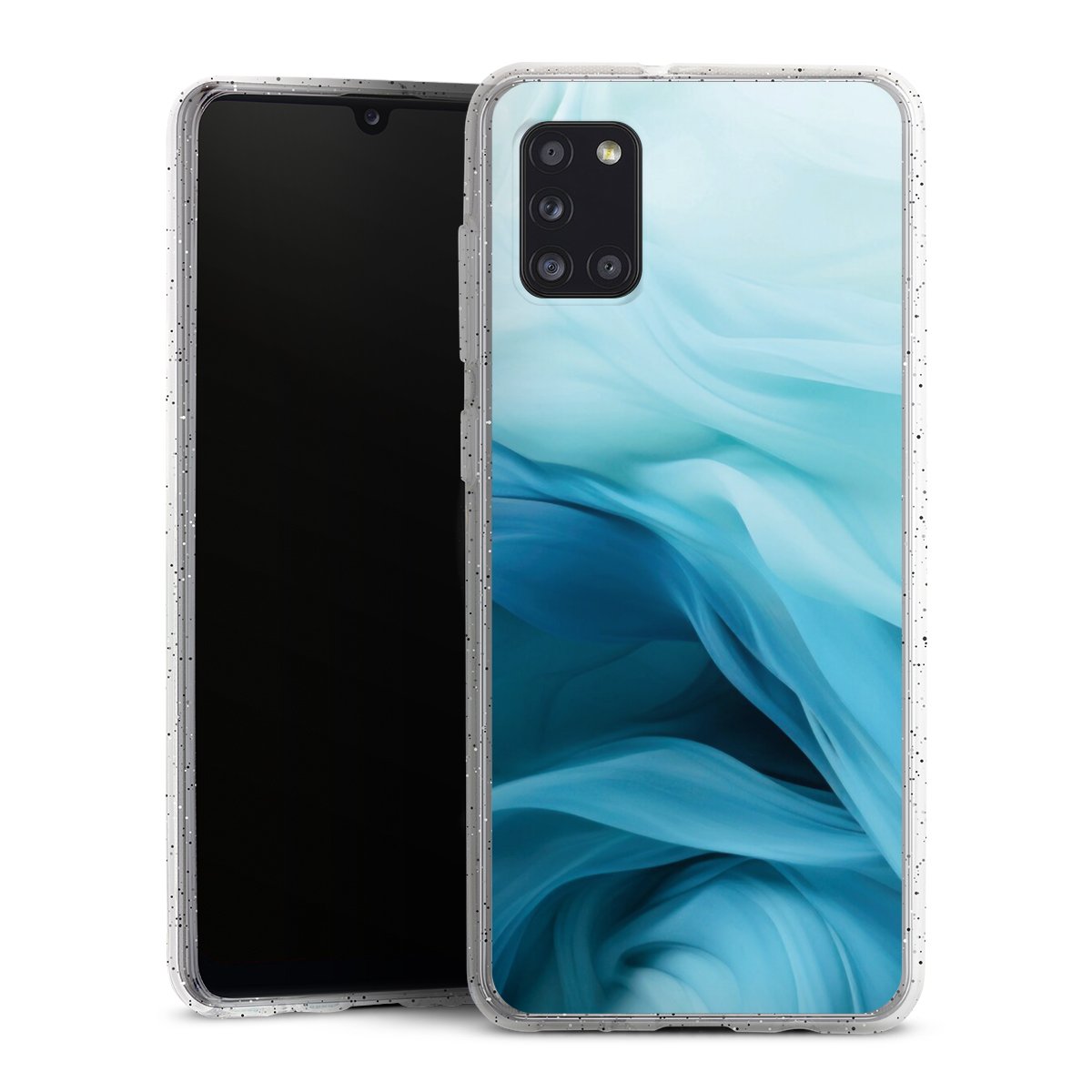Die flexible Silikonhülle besteht aus robustem TPU (thermoplastisches Polyurethan) mit eingearbeiteten Glitzerpartikeln. Durch das langlebige, bruchsichere Material ist die Hülle biegsam und formbeständig zugleich. Die funkelnde Variante unter unseren Handyhüllen liegt griffig in der Hand und ist in Transparent mit silbernem Glitzer erhältlich.