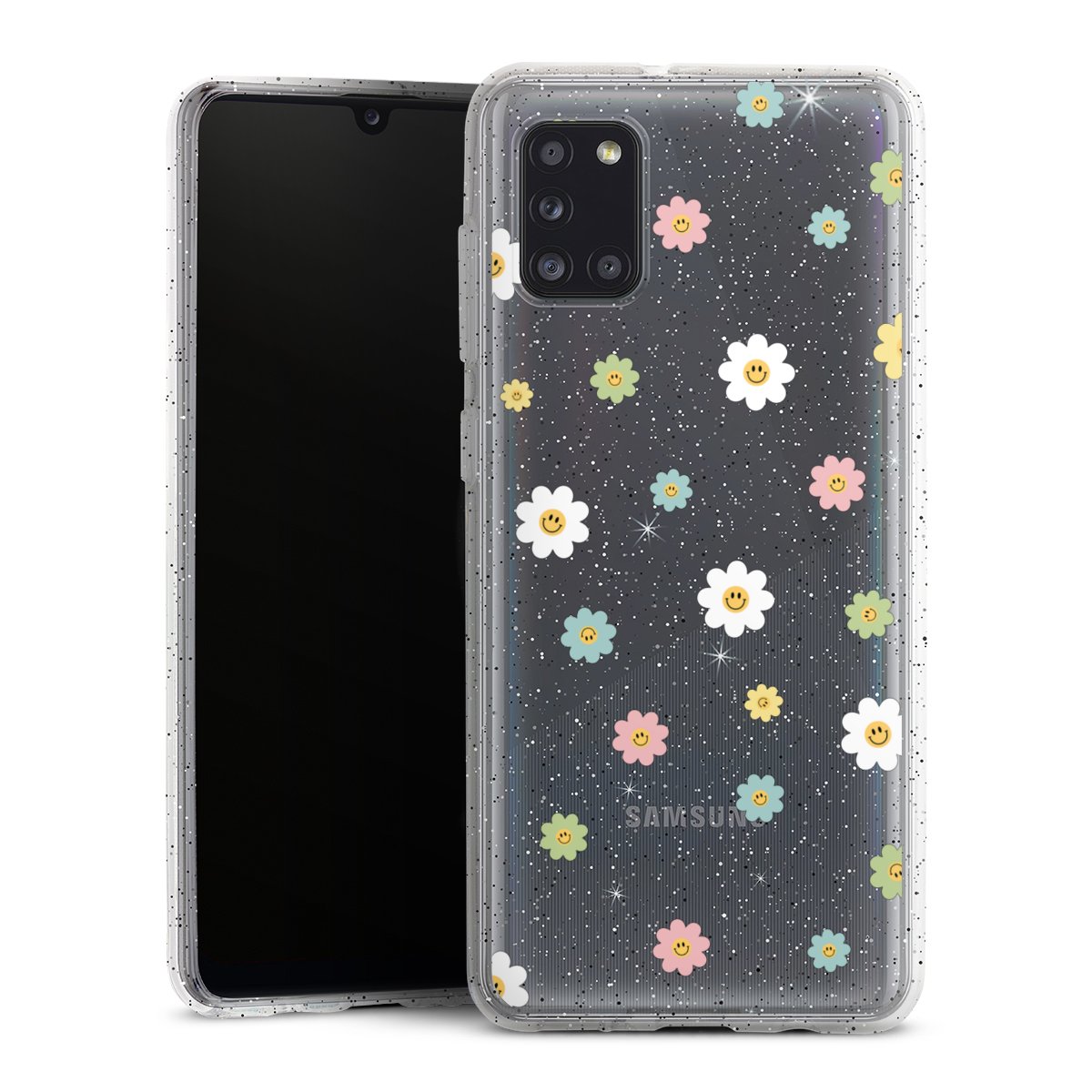 Die flexible Silikonhülle besteht aus robustem TPU (thermoplastisches Polyurethan) mit eingearbeiteten Glitzerpartikeln. Durch das langlebige, bruchsichere Material ist die Hülle biegsam und formbeständig zugleich. Die funkelnde Variante unter unseren Handyhüllen liegt griffig in der Hand und ist in Transparent mit silbernem Glitzer erhältlich.