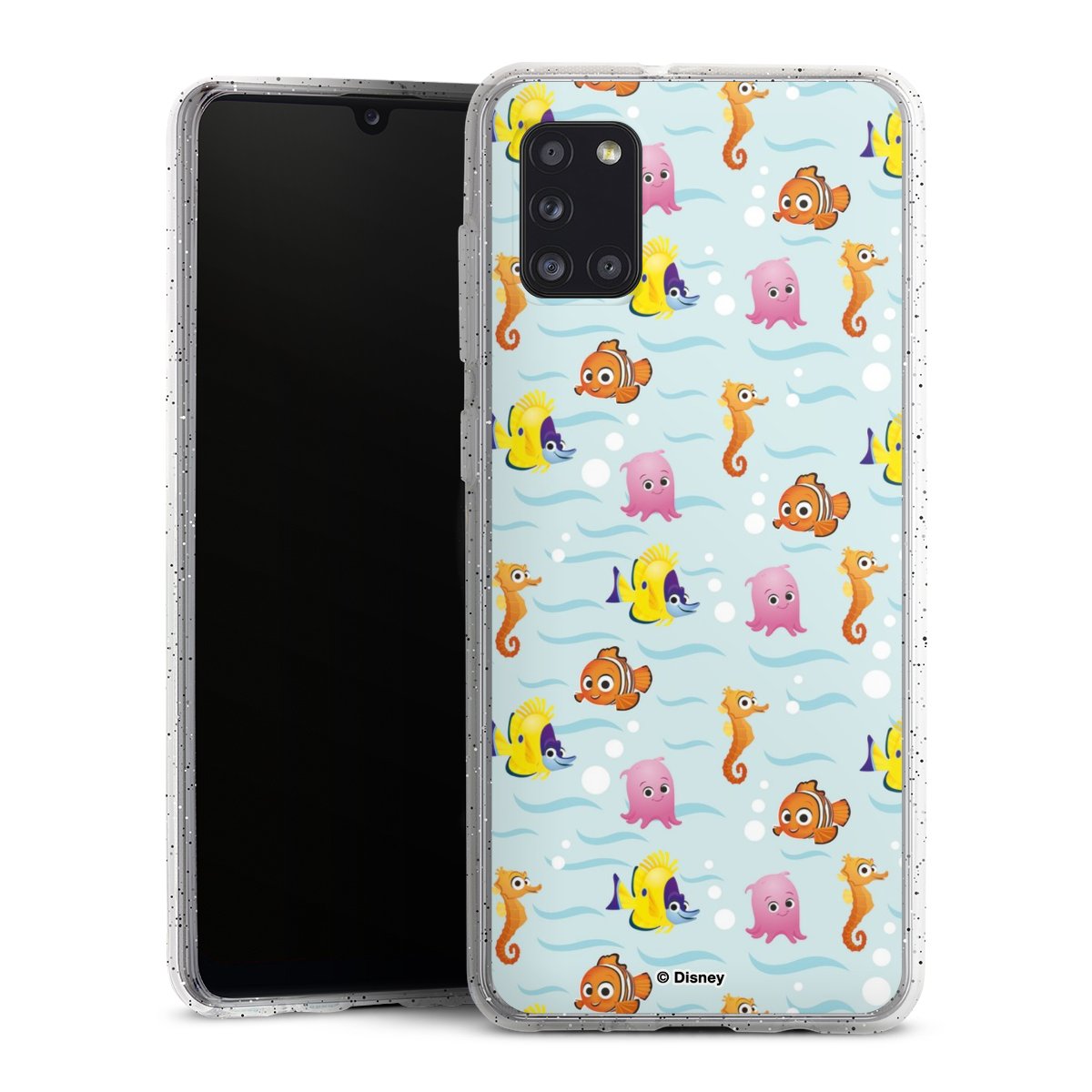 Die flexible Silikonhülle besteht aus robustem TPU (thermoplastisches Polyurethan) mit eingearbeiteten Glitzerpartikeln. Durch das langlebige, bruchsichere Material ist die Hülle biegsam und formbeständig zugleich. Die funkelnde Variante unter unseren Handyhüllen liegt griffig in der Hand und ist in Transparent mit silbernem Glitzer erhältlich.