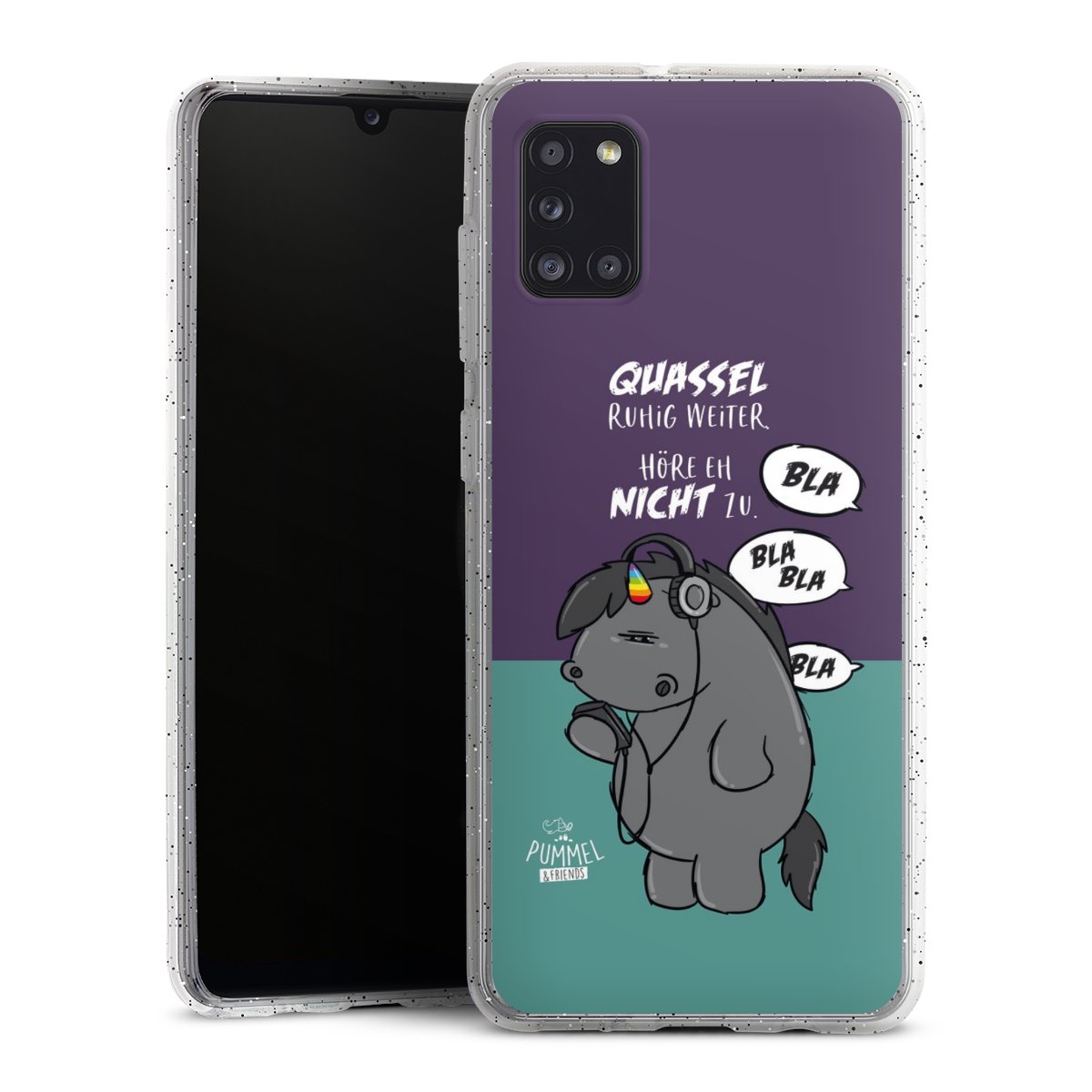Die flexible Silikonhülle besteht aus robustem TPU (thermoplastisches Polyurethan) mit eingearbeiteten Glitzerpartikeln. Durch das langlebige, bruchsichere Material ist die Hülle biegsam und formbeständig zugleich. Die funkelnde Variante unter unseren Handyhüllen liegt griffig in der Hand und ist in Transparent mit silbernem Glitzer erhältlich.