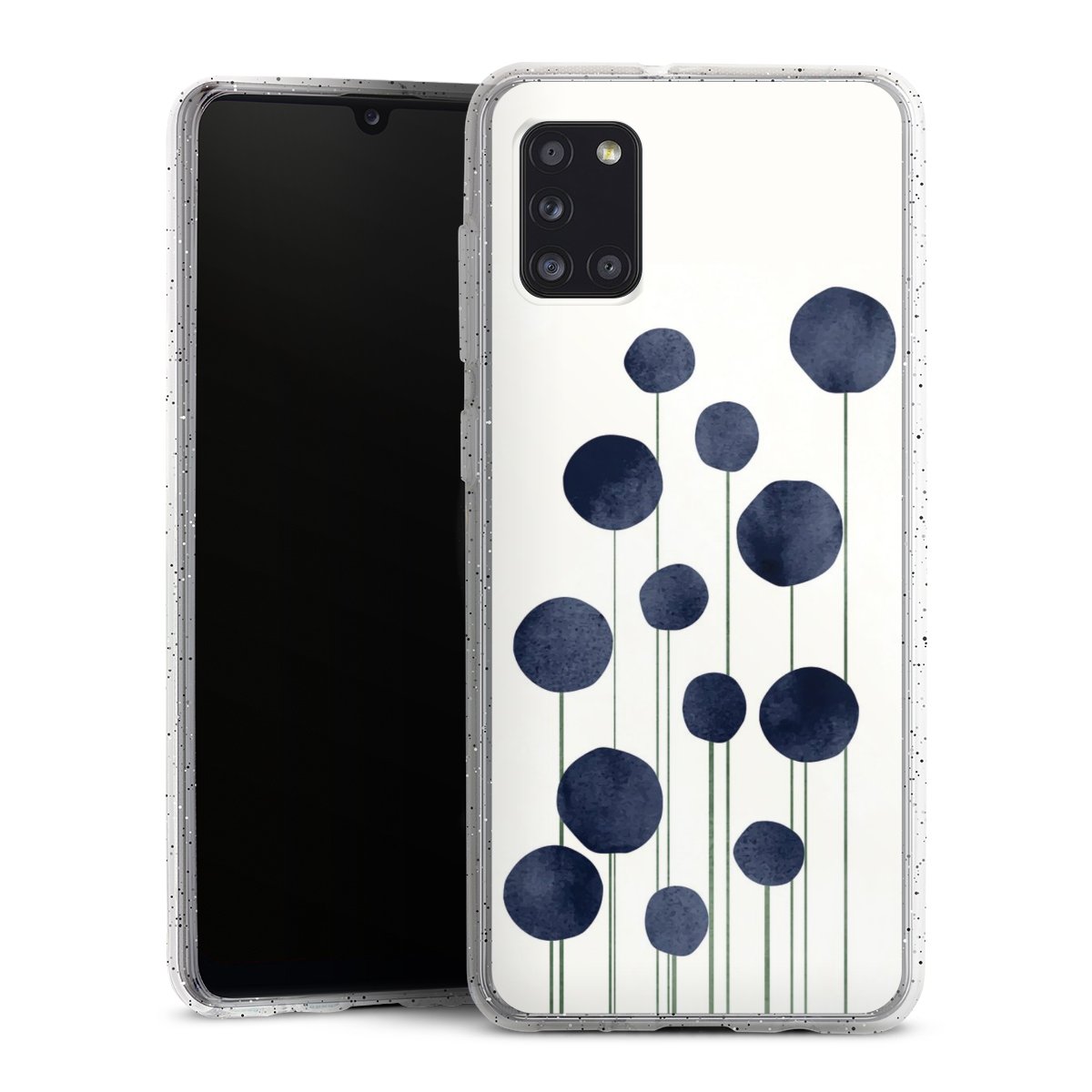 Die flexible Silikonhülle besteht aus robustem TPU (thermoplastisches Polyurethan) mit eingearbeiteten Glitzerpartikeln. Durch das langlebige, bruchsichere Material ist die Hülle biegsam und formbeständig zugleich. Die funkelnde Variante unter unseren Handyhüllen liegt griffig in der Hand und ist in Transparent mit silbernem Glitzer erhältlich.