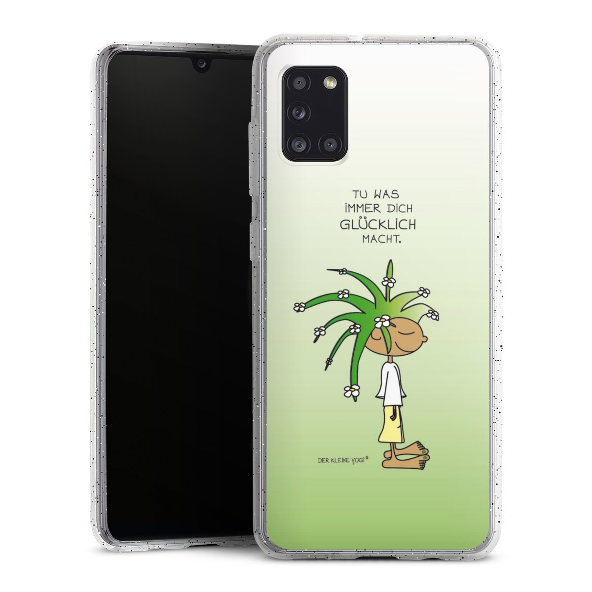 Die flexible Silikonhülle besteht aus robustem TPU (thermoplastisches Polyurethan) mit eingearbeiteten Glitzerpartikeln. Durch das langlebige, bruchsichere Material ist die Hülle biegsam und formbeständig zugleich. Die funkelnde Variante unter unseren Handyhüllen liegt griffig in der Hand und ist in Transparent mit silbernem Glitzer erhältlich.
