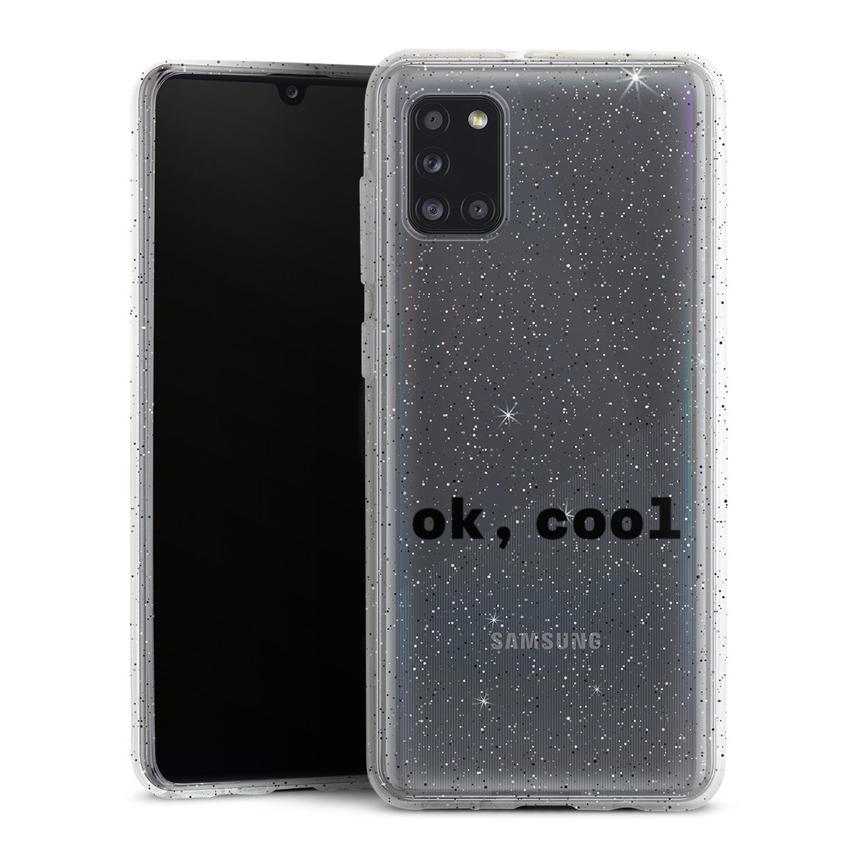 Die flexible Silikonhülle besteht aus robustem TPU (thermoplastisches Polyurethan) mit eingearbeiteten Glitzerpartikeln. Durch das langlebige, bruchsichere Material ist die Hülle biegsam und formbeständig zugleich. Die funkelnde Variante unter unseren Handyhüllen liegt griffig in der Hand und ist in Transparent mit silbernem Glitzer erhältlich.
