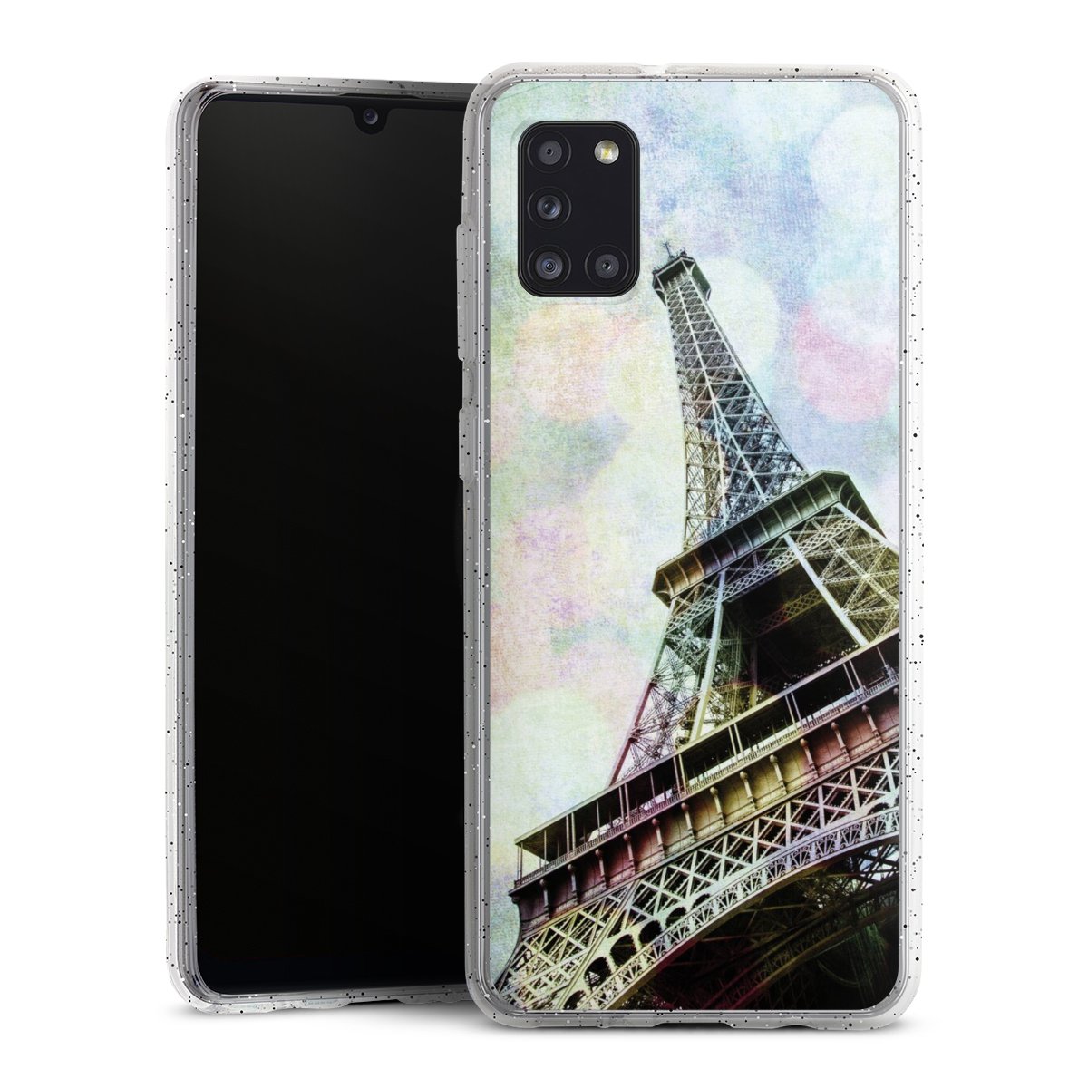 Die flexible Silikonhülle besteht aus robustem TPU (thermoplastisches Polyurethan) mit eingearbeiteten Glitzerpartikeln. Durch das langlebige, bruchsichere Material ist die Hülle biegsam und formbeständig zugleich. Die funkelnde Variante unter unseren Handyhüllen liegt griffig in der Hand und ist in Transparent mit silbernem Glitzer erhältlich.