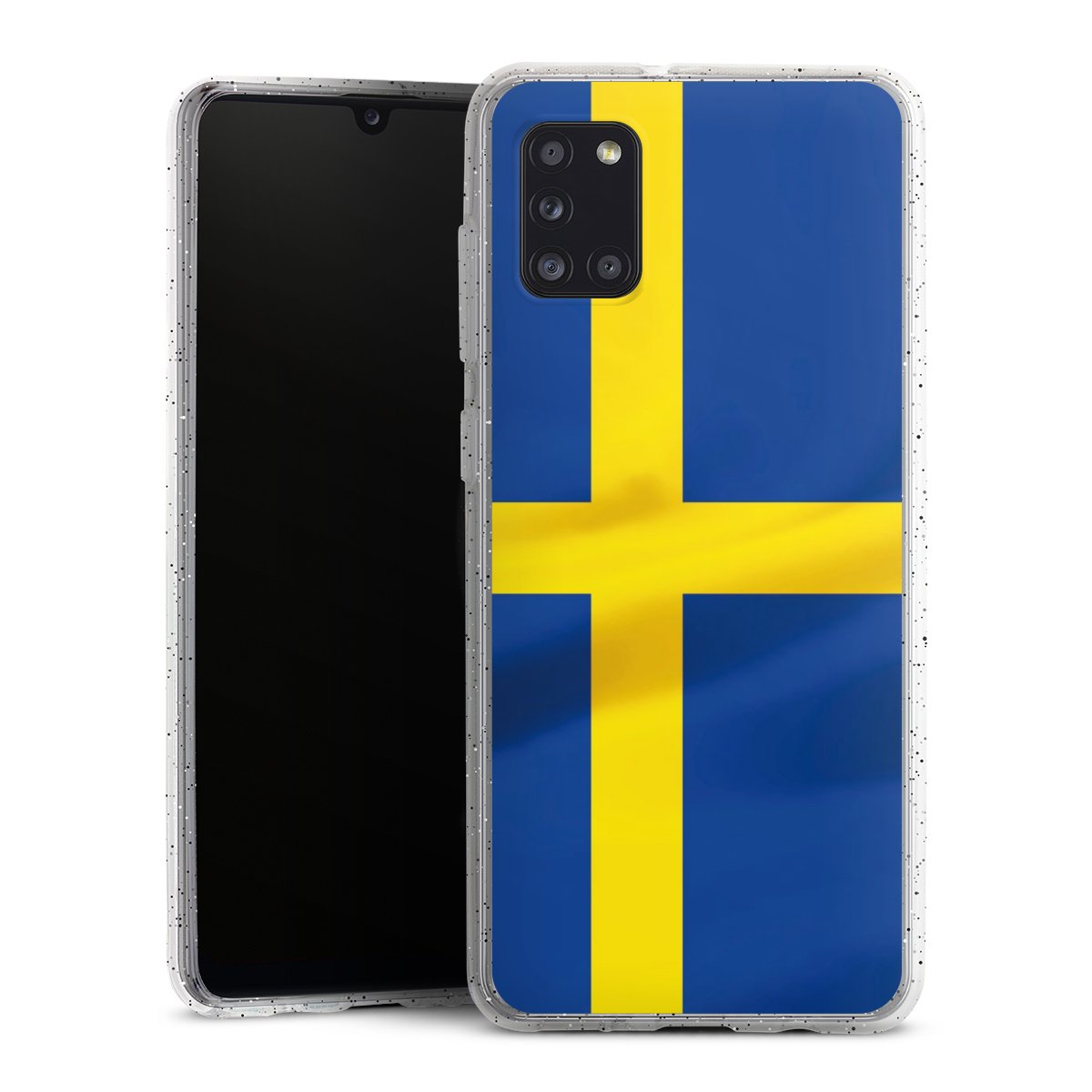 Die flexible Silikonhülle besteht aus robustem TPU (thermoplastisches Polyurethan) mit eingearbeiteten Glitzerpartikeln. Durch das langlebige, bruchsichere Material ist die Hülle biegsam und formbeständig zugleich. Die funkelnde Variante unter unseren Handyhüllen liegt griffig in der Hand und ist in Transparent mit silbernem Glitzer erhältlich.