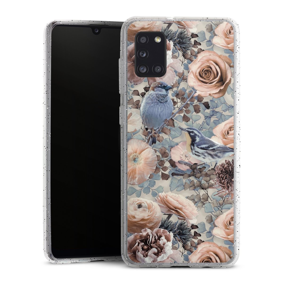 Die flexible Silikonhülle besteht aus robustem TPU (thermoplastisches Polyurethan) mit eingearbeiteten Glitzerpartikeln. Durch das langlebige, bruchsichere Material ist die Hülle biegsam und formbeständig zugleich. Die funkelnde Variante unter unseren Handyhüllen liegt griffig in der Hand und ist in Transparent mit silbernem Glitzer erhältlich.