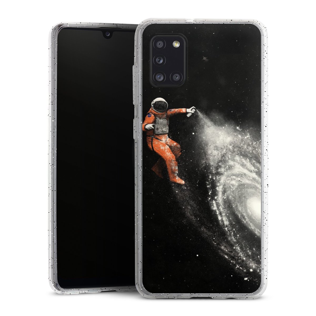 Die flexible Silikonhülle besteht aus robustem TPU (thermoplastisches Polyurethan) mit eingearbeiteten Glitzerpartikeln. Durch das langlebige, bruchsichere Material ist die Hülle biegsam und formbeständig zugleich. Die funkelnde Variante unter unseren Handyhüllen liegt griffig in der Hand und ist in Transparent mit silbernem Glitzer erhältlich.