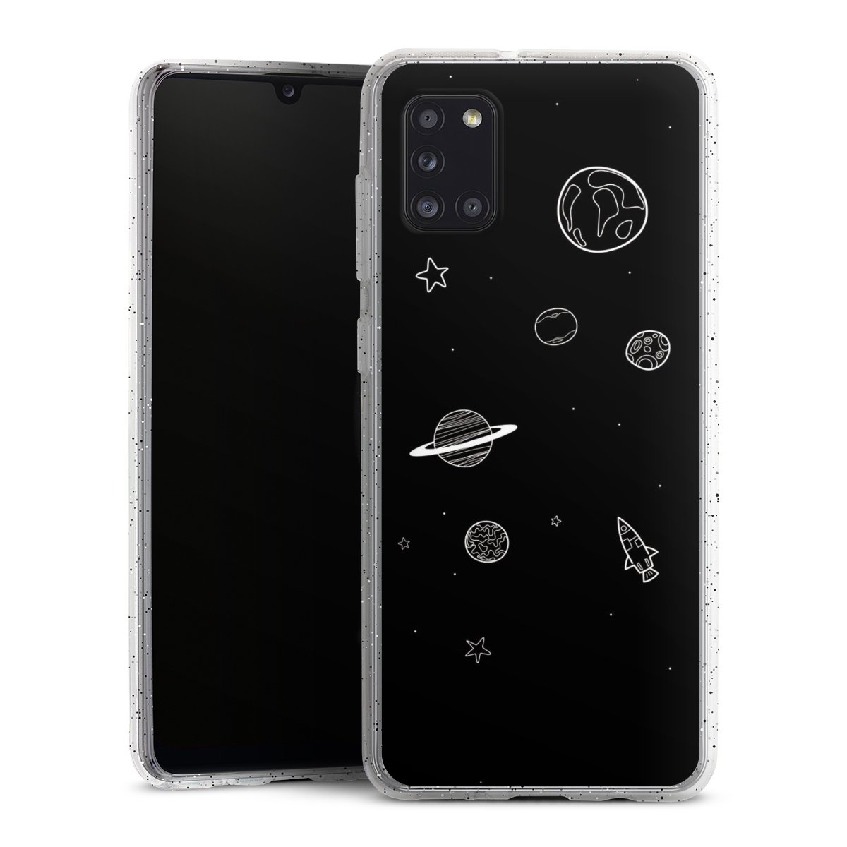 Die flexible Silikonhülle besteht aus robustem TPU (thermoplastisches Polyurethan) mit eingearbeiteten Glitzerpartikeln. Durch das langlebige, bruchsichere Material ist die Hülle biegsam und formbeständig zugleich. Die funkelnde Variante unter unseren Handyhüllen liegt griffig in der Hand und ist in Transparent mit silbernem Glitzer erhältlich.