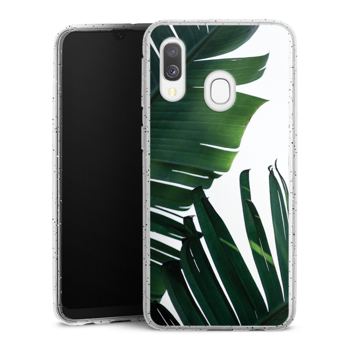 Die flexible Silikonhülle besteht aus robustem TPU (thermoplastisches Polyurethan) mit eingearbeiteten Glitzerpartikeln. Durch das langlebige, bruchsichere Material ist die Hülle biegsam und formbeständig zugleich. Die funkelnde Variante unter unseren Handyhüllen liegt griffig in der Hand und ist in Transparent mit silbernem Glitzer erhältlich.