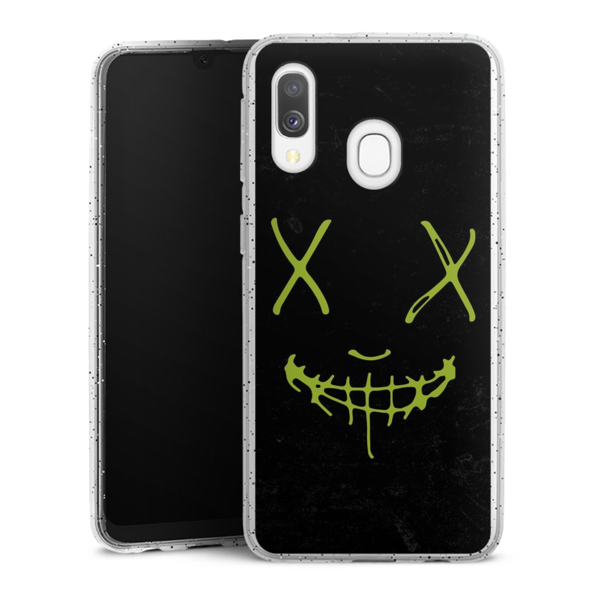 Die flexible Silikonhülle besteht aus robustem TPU (thermoplastisches Polyurethan) mit eingearbeiteten Glitzerpartikeln. Durch das langlebige, bruchsichere Material ist die Hülle biegsam und formbeständig zugleich. Die funkelnde Variante unter unseren Handyhüllen liegt griffig in der Hand und ist in Transparent mit silbernem Glitzer erhältlich.