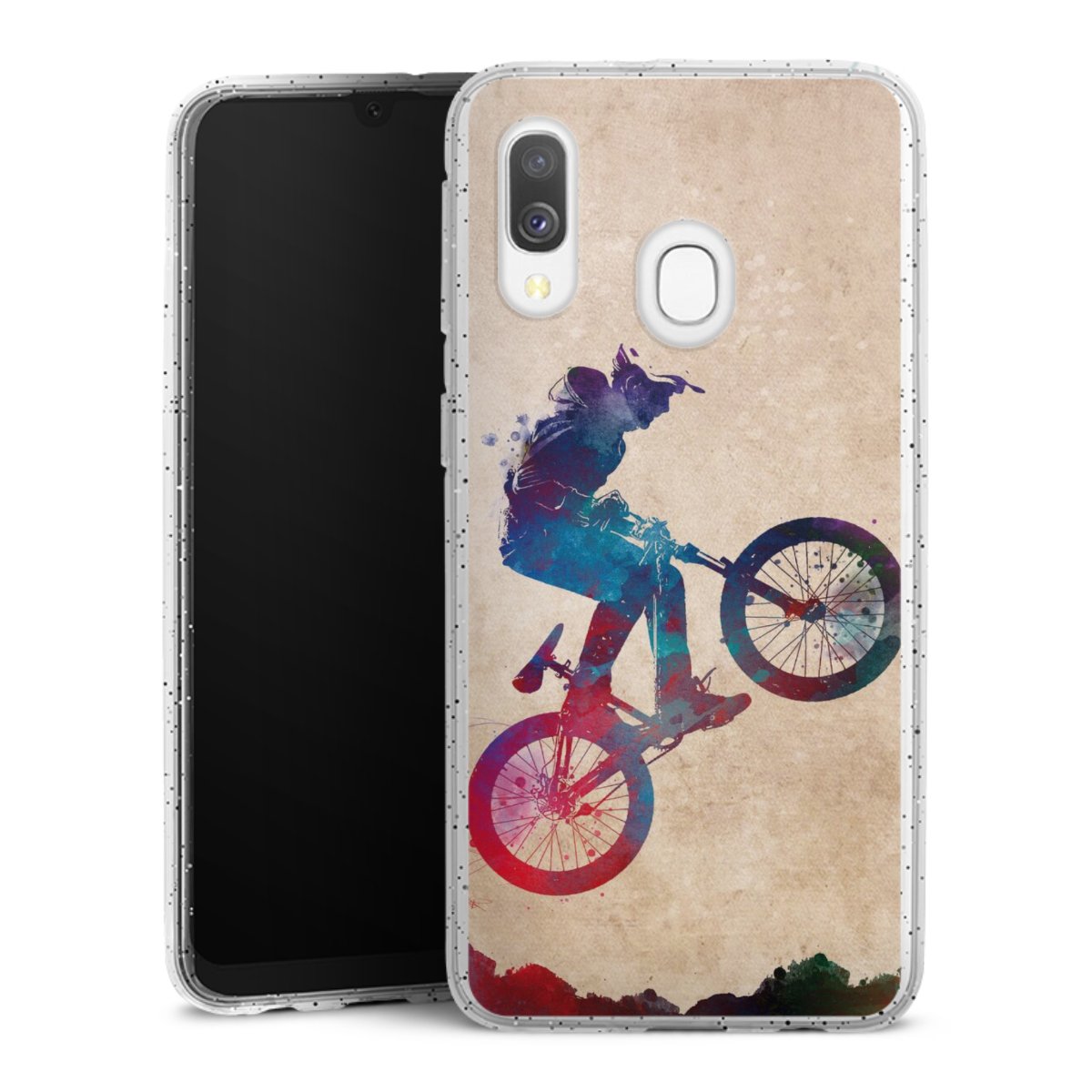 Die flexible Silikonhülle besteht aus robustem TPU (thermoplastisches Polyurethan) mit eingearbeiteten Glitzerpartikeln. Durch das langlebige, bruchsichere Material ist die Hülle biegsam und formbeständig zugleich. Die funkelnde Variante unter unseren Handyhüllen liegt griffig in der Hand und ist in Transparent mit silbernem Glitzer erhältlich.