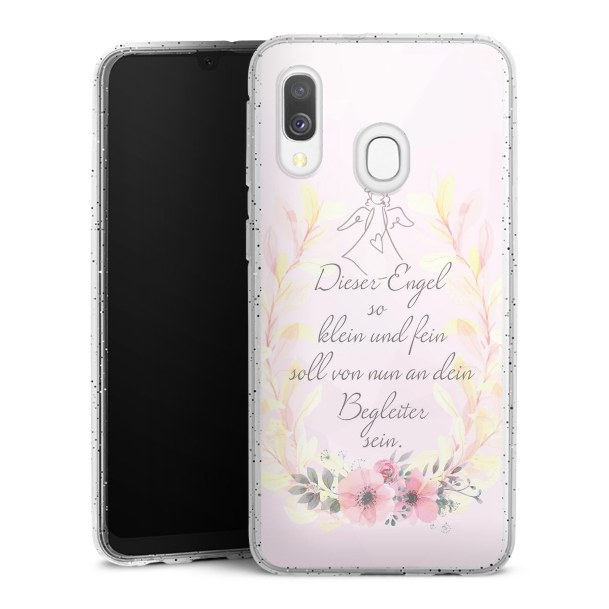 Die flexible Silikonhülle besteht aus robustem TPU (thermoplastisches Polyurethan) mit eingearbeiteten Glitzerpartikeln. Durch das langlebige, bruchsichere Material ist die Hülle biegsam und formbeständig zugleich. Die funkelnde Variante unter unseren Handyhüllen liegt griffig in der Hand und ist in Transparent mit silbernem Glitzer erhältlich.