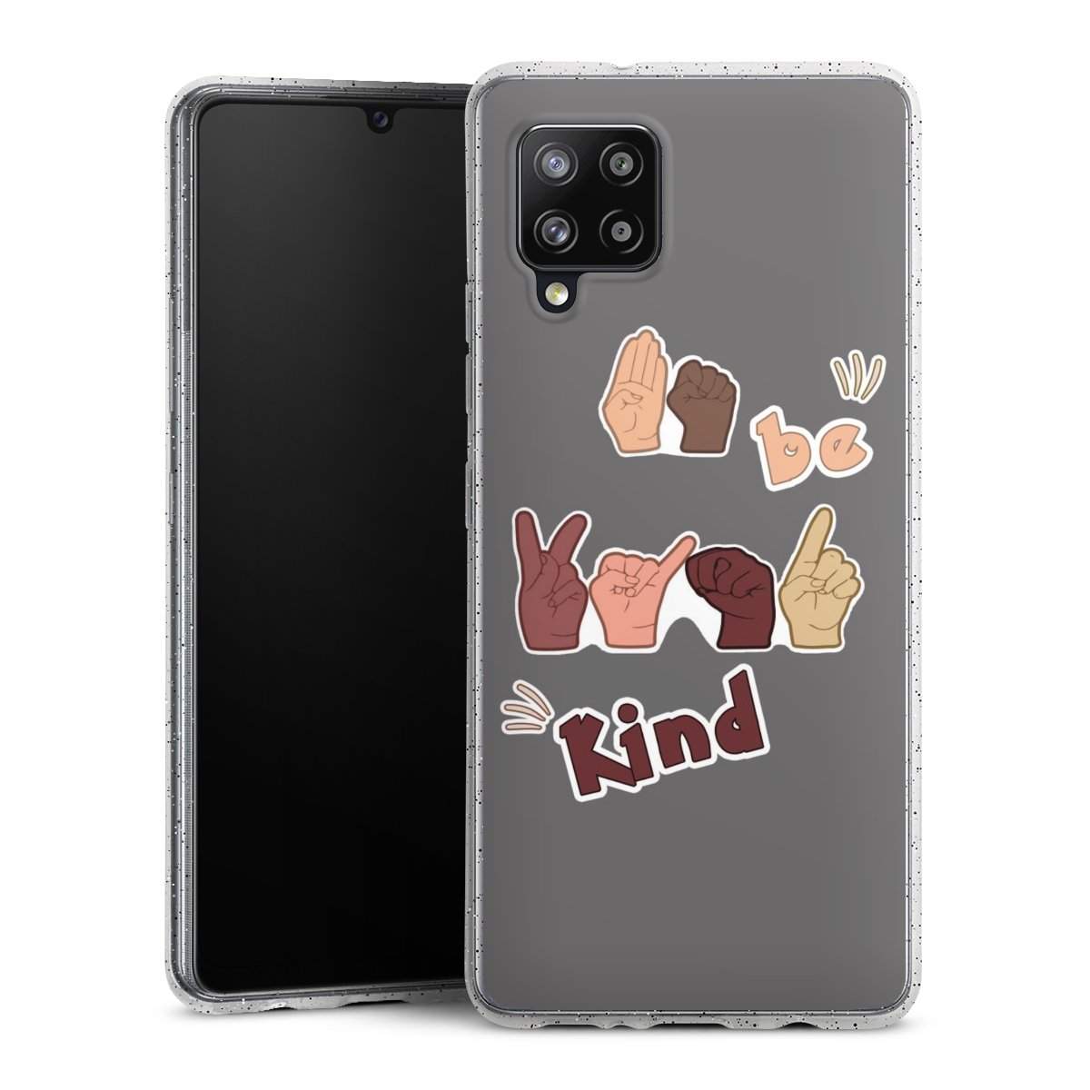 Die flexible Silikonhülle besteht aus robustem TPU (thermoplastisches Polyurethan) mit eingearbeiteten Glitzerpartikeln. Durch das langlebige, bruchsichere Material ist die Hülle biegsam und formbeständig zugleich. Die funkelnde Variante unter unseren Handyhüllen liegt griffig in der Hand und ist in Transparent mit silbernem Glitzer erhältlich.