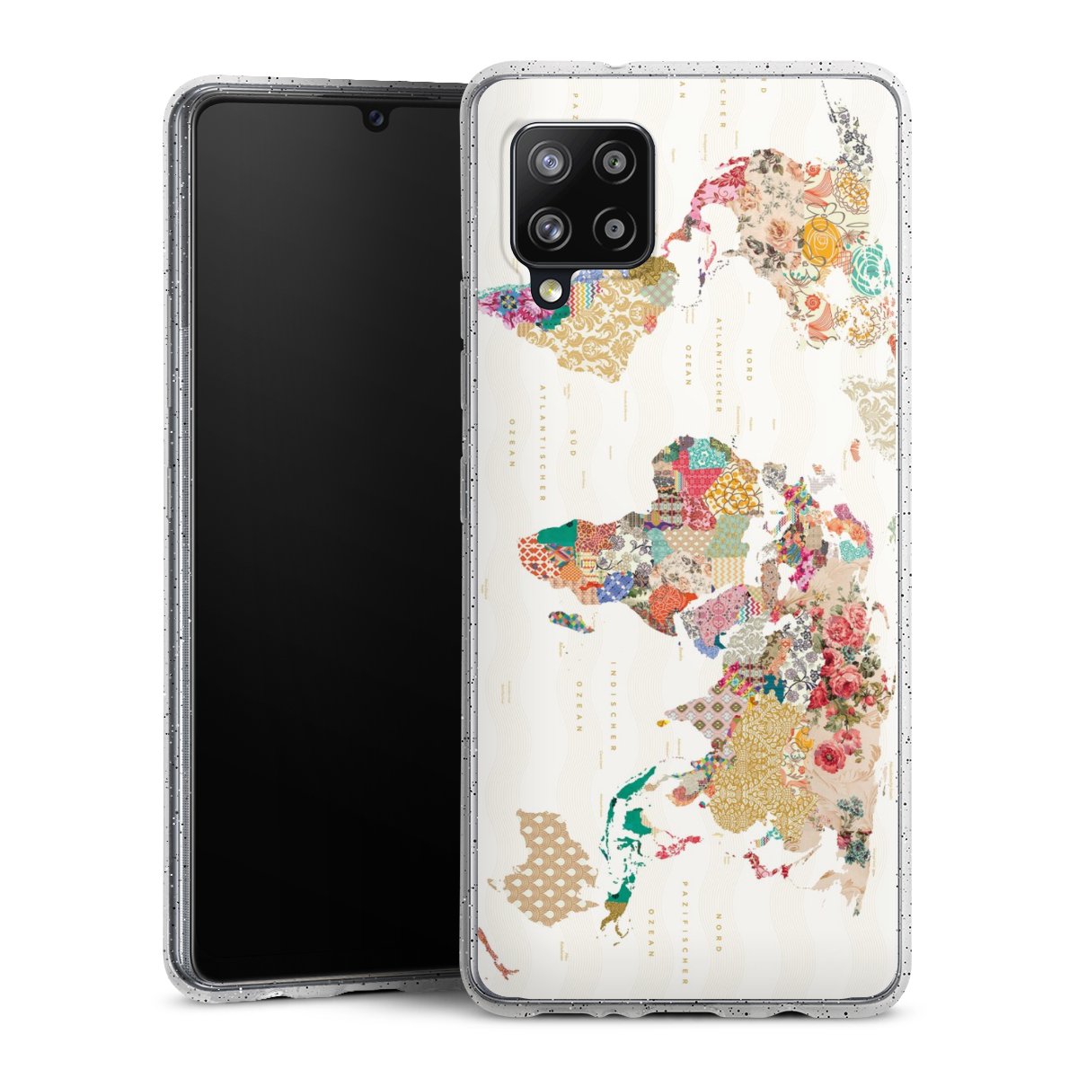 Die flexible Silikonhülle besteht aus robustem TPU (thermoplastisches Polyurethan) mit eingearbeiteten Glitzerpartikeln. Durch das langlebige, bruchsichere Material ist die Hülle biegsam und formbeständig zugleich. Die funkelnde Variante unter unseren Handyhüllen liegt griffig in der Hand und ist in Transparent mit silbernem Glitzer erhältlich.