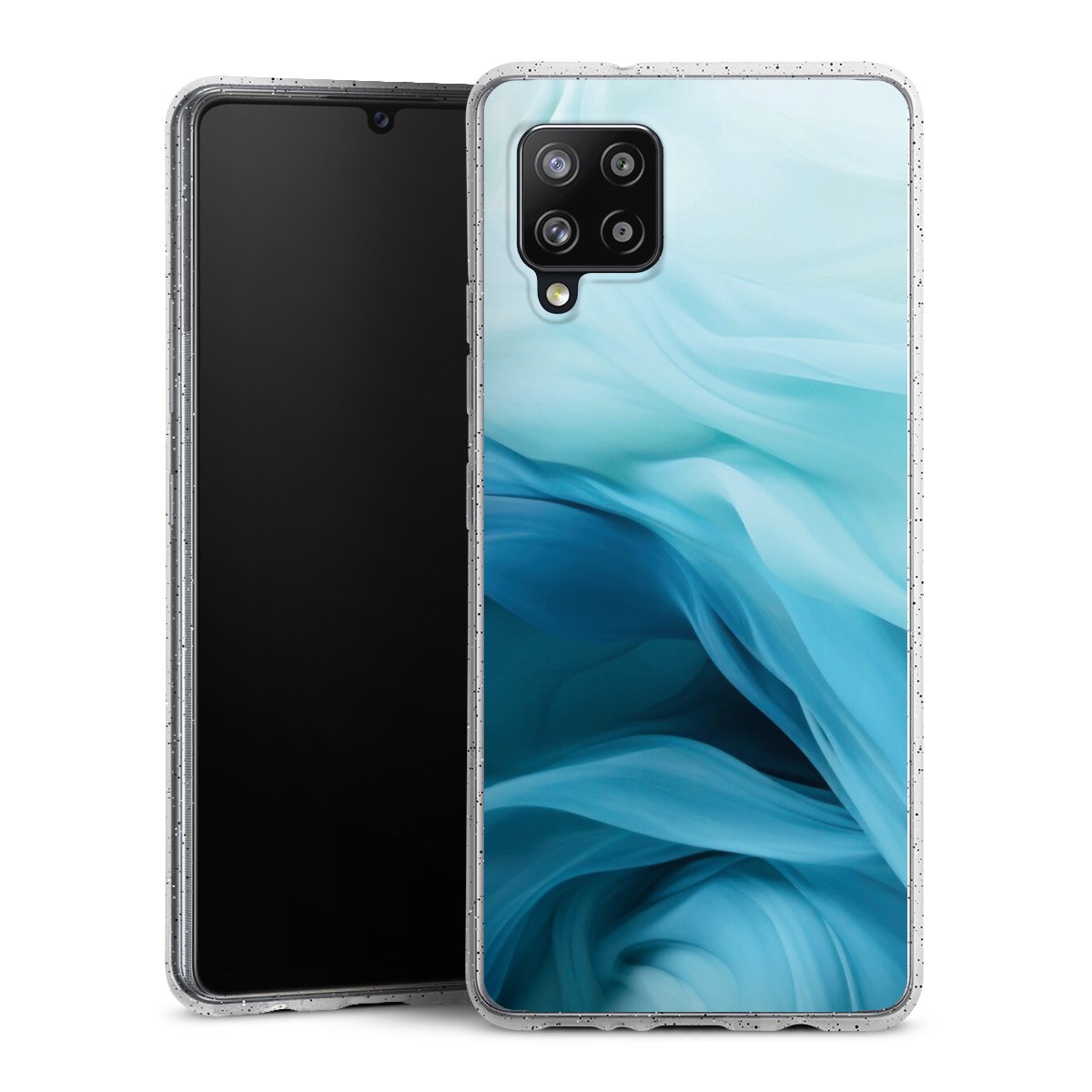 Die flexible Silikonhülle besteht aus robustem TPU (thermoplastisches Polyurethan) mit eingearbeiteten Glitzerpartikeln. Durch das langlebige, bruchsichere Material ist die Hülle biegsam und formbeständig zugleich. Die funkelnde Variante unter unseren Handyhüllen liegt griffig in der Hand und ist in Transparent mit silbernem Glitzer erhältlich.