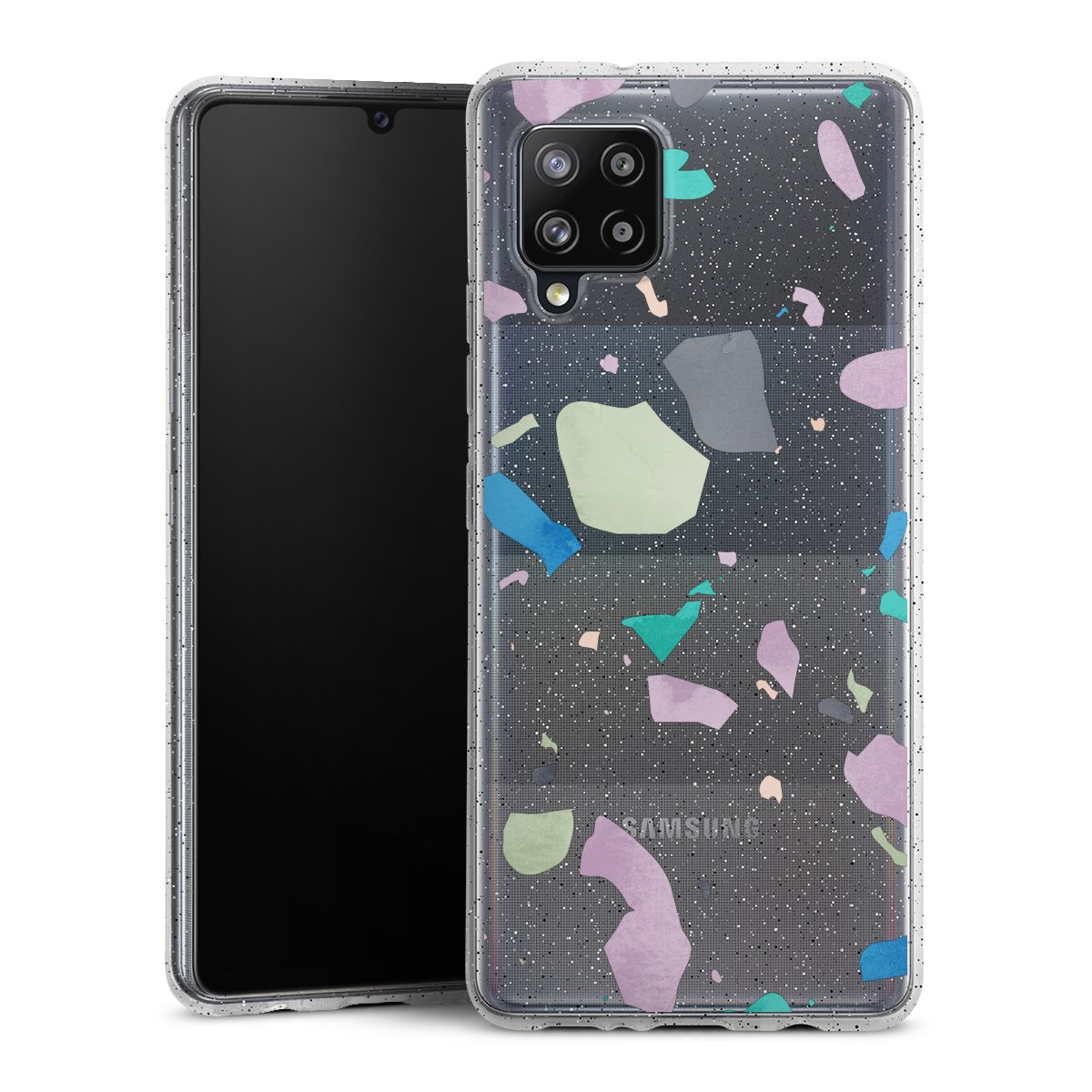 Die flexible Silikonhülle besteht aus robustem TPU (thermoplastisches Polyurethan) mit eingearbeiteten Glitzerpartikeln. Durch das langlebige, bruchsichere Material ist die Hülle biegsam und formbeständig zugleich. Die funkelnde Variante unter unseren Handyhüllen liegt griffig in der Hand und ist in Transparent mit silbernem Glitzer erhältlich.