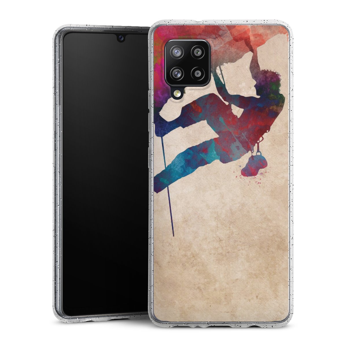 Die flexible Silikonhülle besteht aus robustem TPU (thermoplastisches Polyurethan) mit eingearbeiteten Glitzerpartikeln. Durch das langlebige, bruchsichere Material ist die Hülle biegsam und formbeständig zugleich. Die funkelnde Variante unter unseren Handyhüllen liegt griffig in der Hand und ist in Transparent mit silbernem Glitzer erhältlich.