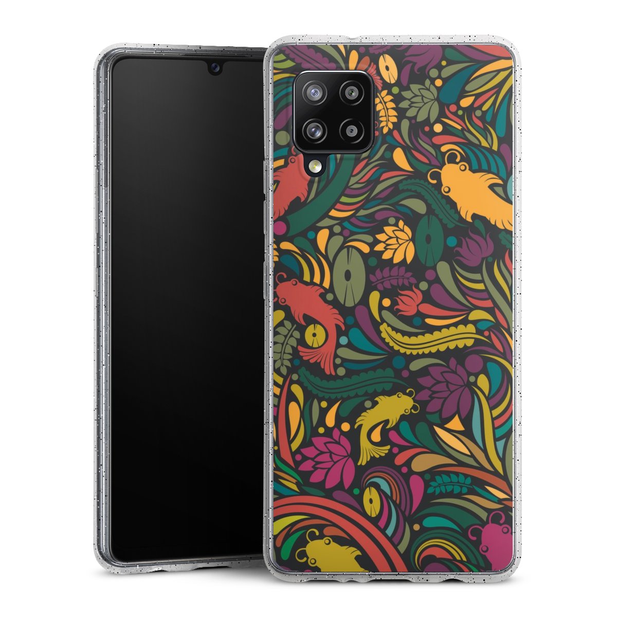 Die flexible Silikonhülle besteht aus robustem TPU (thermoplastisches Polyurethan) mit eingearbeiteten Glitzerpartikeln. Durch das langlebige, bruchsichere Material ist die Hülle biegsam und formbeständig zugleich. Die funkelnde Variante unter unseren Handyhüllen liegt griffig in der Hand und ist in Transparent mit silbernem Glitzer erhältlich.