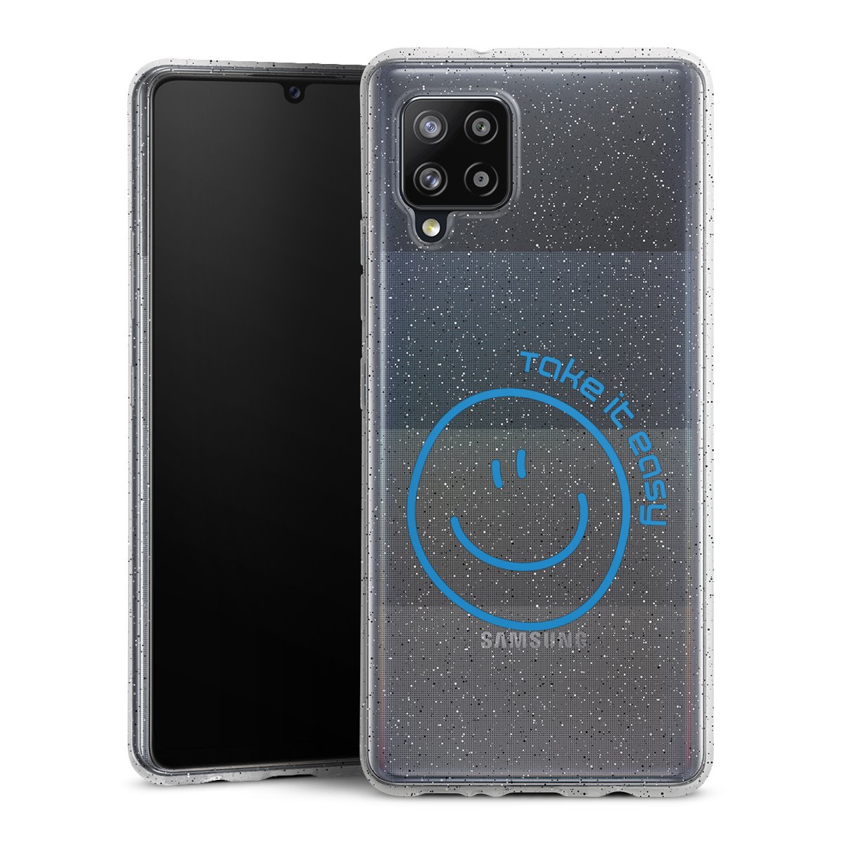 Die flexible Silikonhülle besteht aus robustem TPU (thermoplastisches Polyurethan) mit eingearbeiteten Glitzerpartikeln. Durch das langlebige, bruchsichere Material ist die Hülle biegsam und formbeständig zugleich. Die funkelnde Variante unter unseren Handyhüllen liegt griffig in der Hand und ist in Transparent mit silbernem Glitzer erhältlich.