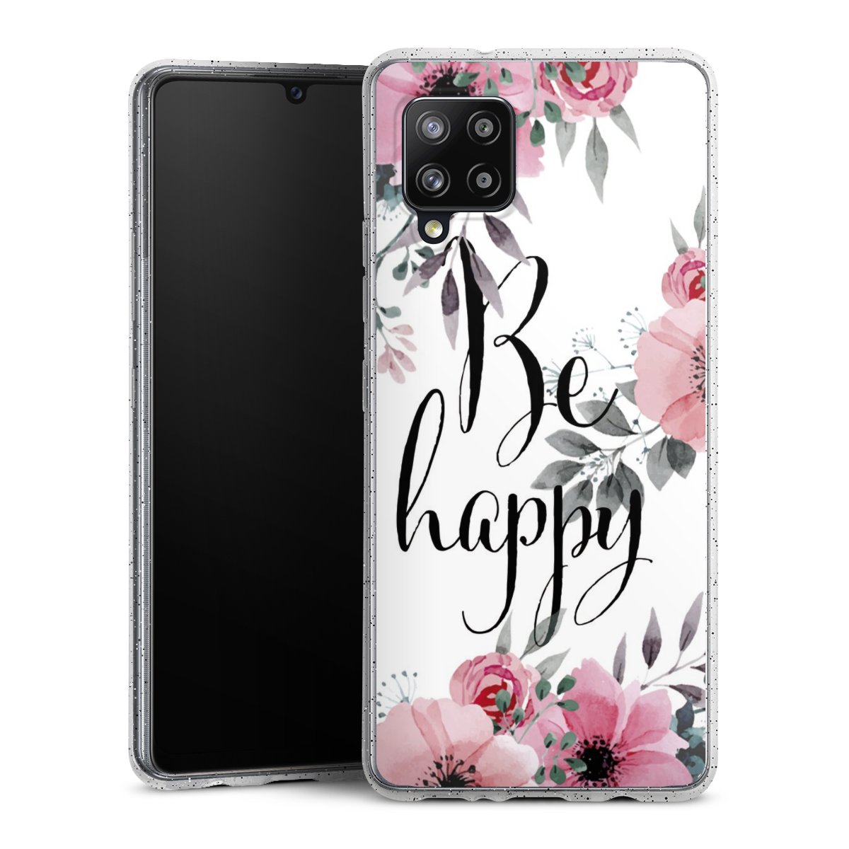 Die flexible Silikonhülle besteht aus robustem TPU (thermoplastisches Polyurethan) mit eingearbeiteten Glitzerpartikeln. Durch das langlebige, bruchsichere Material ist die Hülle biegsam und formbeständig zugleich. Die funkelnde Variante unter unseren Handyhüllen liegt griffig in der Hand und ist in Transparent mit silbernem Glitzer erhältlich.