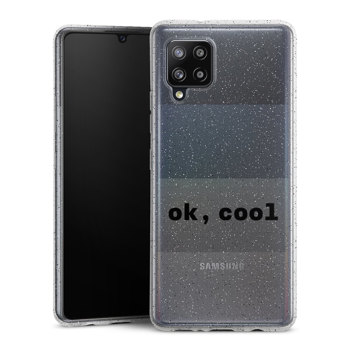 Die flexible Silikonhülle besteht aus robustem TPU (thermoplastisches Polyurethan) mit eingearbeiteten Glitzerpartikeln. Durch das langlebige, bruchsichere Material ist die Hülle biegsam und formbeständig zugleich. Die funkelnde Variante unter unseren Handyhüllen liegt griffig in der Hand und ist in Transparent mit silbernem Glitzer erhältlich.