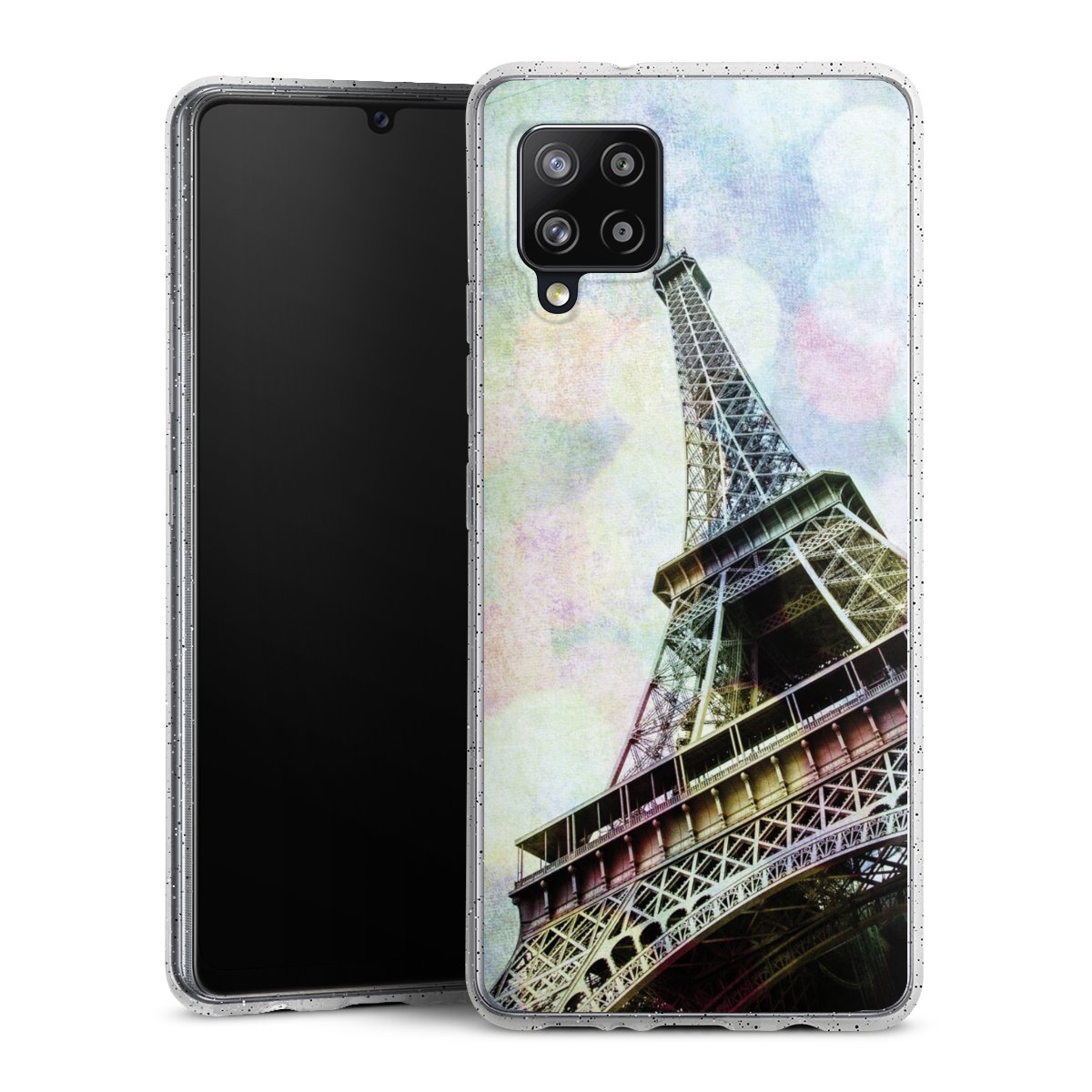 Die flexible Silikonhülle besteht aus robustem TPU (thermoplastisches Polyurethan) mit eingearbeiteten Glitzerpartikeln. Durch das langlebige, bruchsichere Material ist die Hülle biegsam und formbeständig zugleich. Die funkelnde Variante unter unseren Handyhüllen liegt griffig in der Hand und ist in Transparent mit silbernem Glitzer erhältlich.