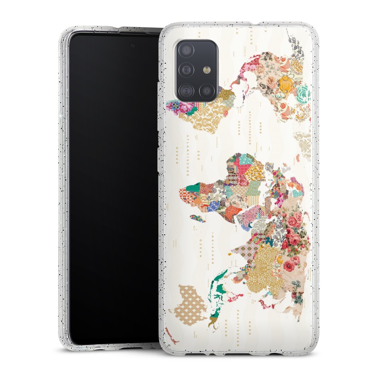 Die flexible Silikonhülle besteht aus robustem TPU (thermoplastisches Polyurethan) mit eingearbeiteten Glitzerpartikeln. Durch das langlebige, bruchsichere Material ist die Hülle biegsam und formbeständig zugleich. Die funkelnde Variante unter unseren Handyhüllen liegt griffig in der Hand und ist in Transparent mit silbernem Glitzer erhältlich.