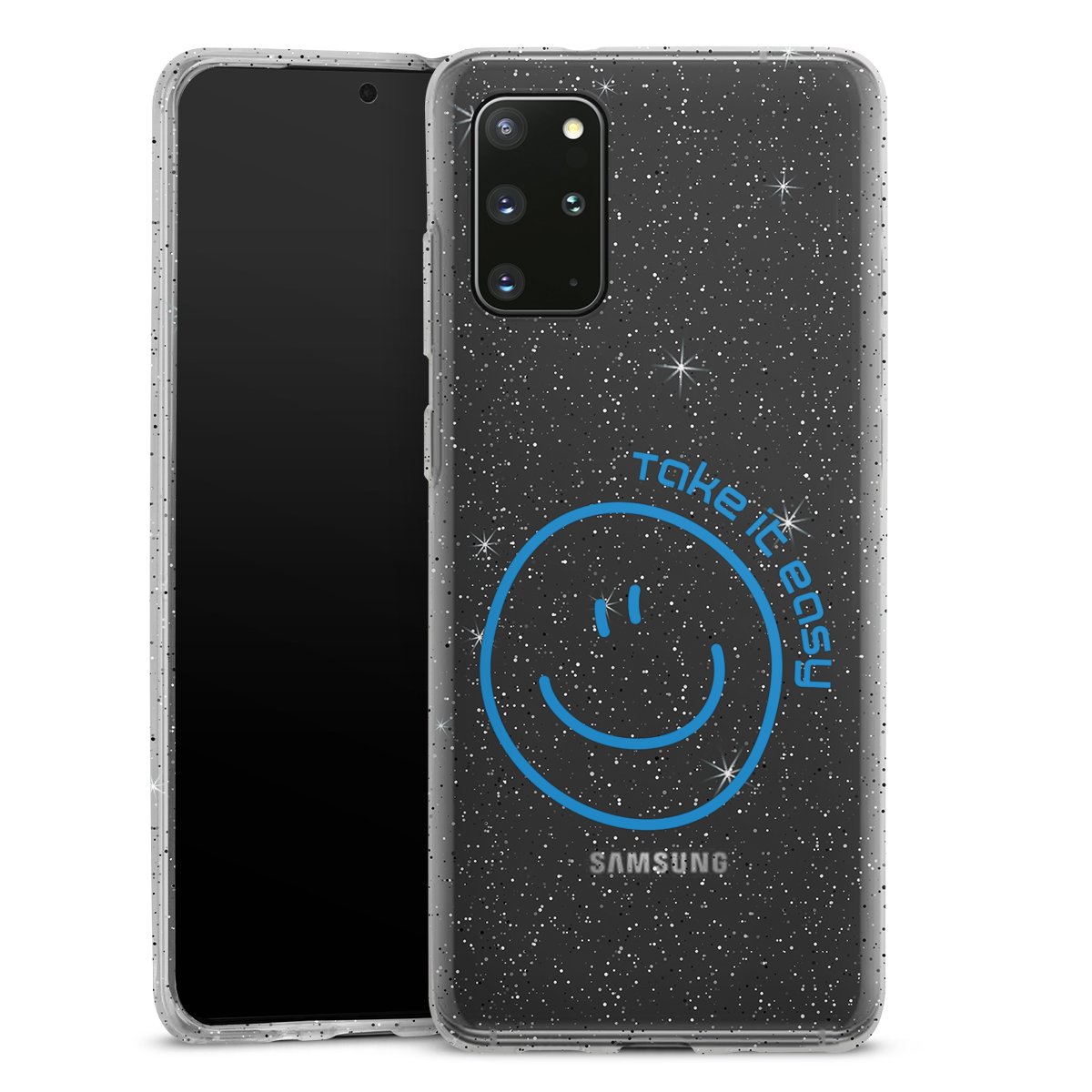 Die flexible Silikonhülle besteht aus robustem TPU (thermoplastisches Polyurethan) mit eingearbeiteten Glitzerpartikeln. Durch das langlebige, bruchsichere Material ist die Hülle biegsam und formbeständig zugleich. Die funkelnde Variante unter unseren Handyhüllen liegt griffig in der Hand und ist in Transparent mit silbernem Glitzer erhältlich.