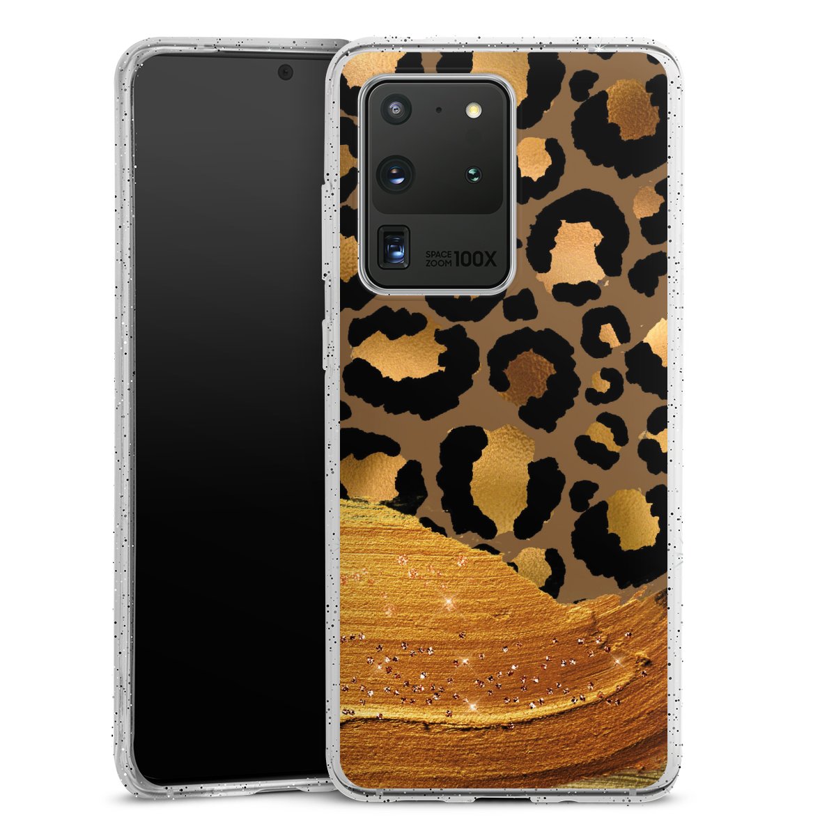 Dunkelgoldener Leoparden Glitzerlook