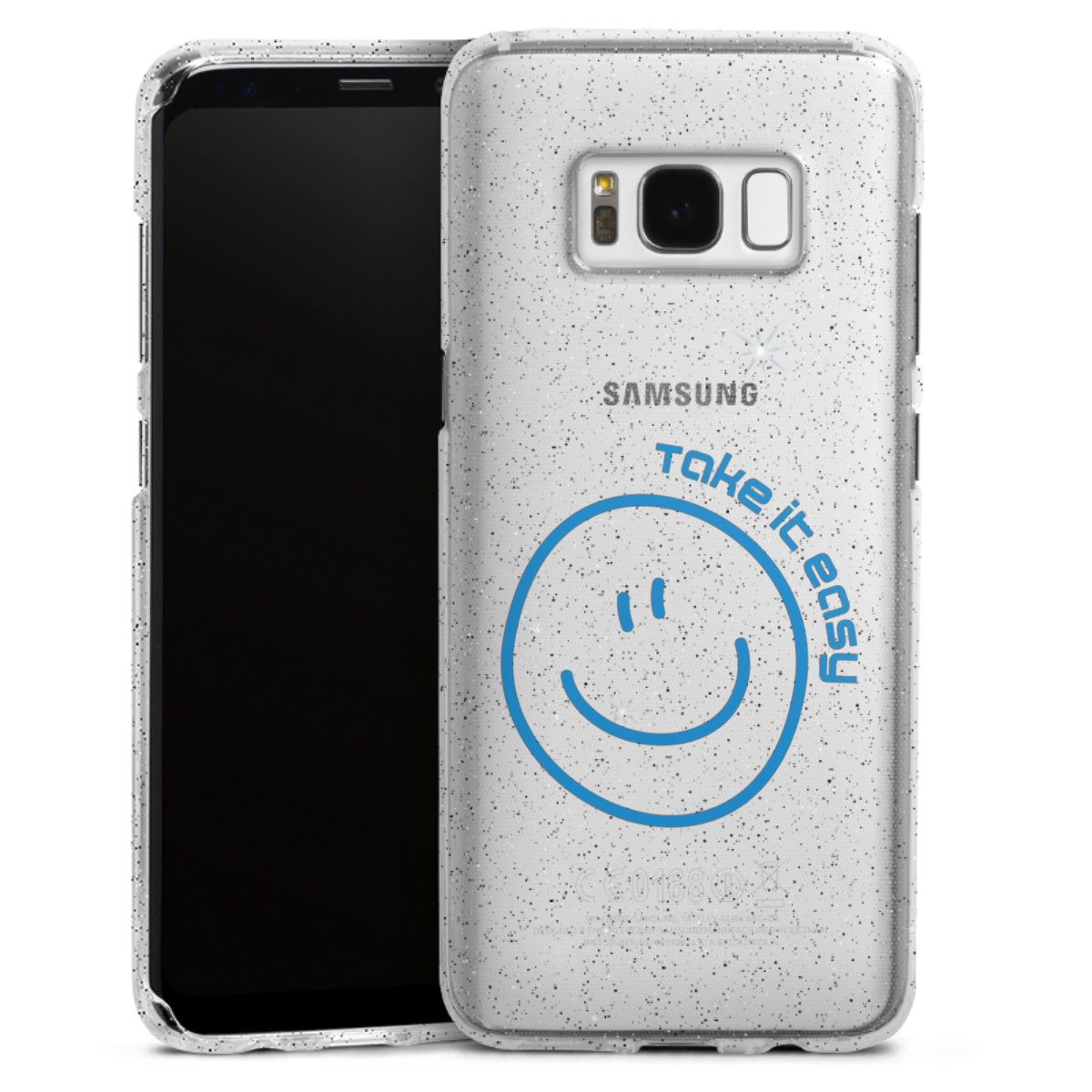 Die flexible Silikonhülle besteht aus robustem TPU (thermoplastisches Polyurethan) mit eingearbeiteten Glitzerpartikeln. Durch das langlebige, bruchsichere Material ist die Hülle biegsam und formbeständig zugleich. Die funkelnde Variante unter unseren Handyhüllen liegt griffig in der Hand und ist in Transparent mit silbernem Glitzer erhältlich.