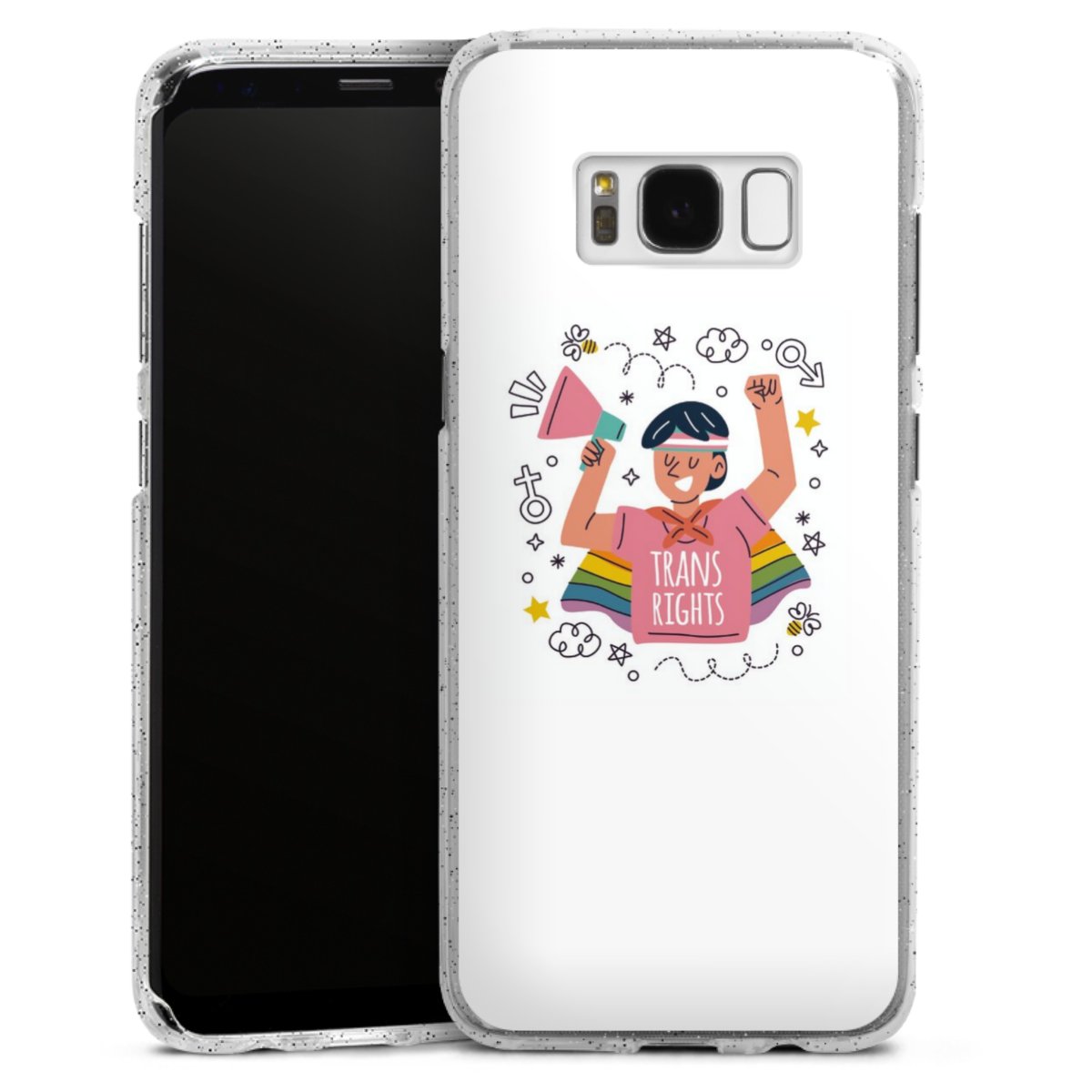 Die flexible Silikonhülle besteht aus robustem TPU (thermoplastisches Polyurethan) mit eingearbeiteten Glitzerpartikeln. Durch das langlebige, bruchsichere Material ist die Hülle biegsam und formbeständig zugleich. Die funkelnde Variante unter unseren Handyhüllen liegt griffig in der Hand und ist in Transparent mit silbernem Glitzer erhältlich.
