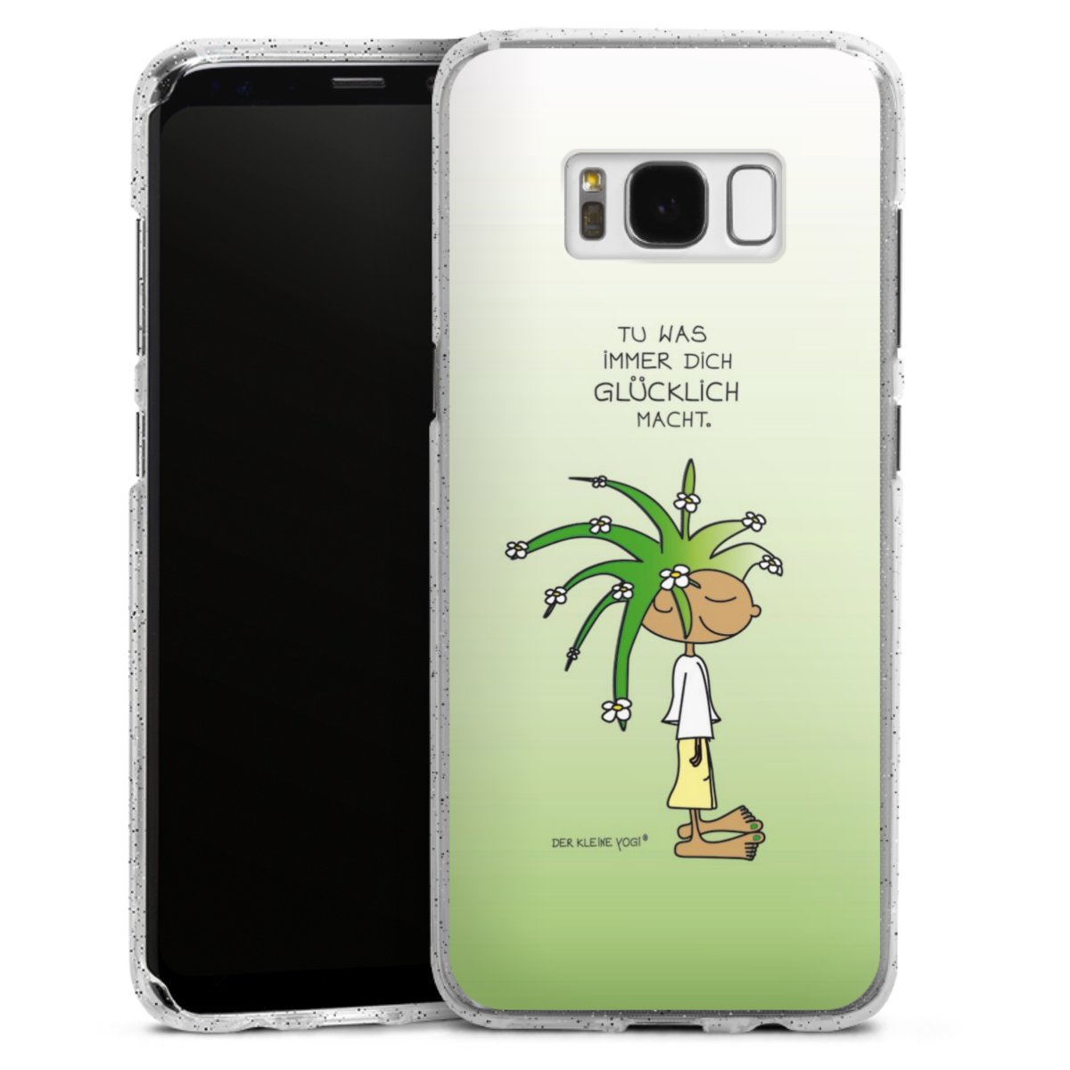 Die flexible Silikonhülle besteht aus robustem TPU (thermoplastisches Polyurethan) mit eingearbeiteten Glitzerpartikeln. Durch das langlebige, bruchsichere Material ist die Hülle biegsam und formbeständig zugleich. Die funkelnde Variante unter unseren Handyhüllen liegt griffig in der Hand und ist in Transparent mit silbernem Glitzer erhältlich.