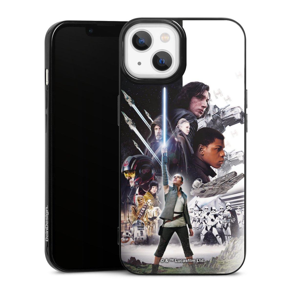 Darth Vader, C3PO, R2D2 und Meister Yoda findest Du in unserem Star Wars Shop auf DeinDesign. Natürlich gibt es auch Star Wars Handyhüllen mit den legendären Charakteren Luke Skywalker, Prinzessin Leia und Han Solo, den Helden der ersten Saga. Wer jedoch die Hauptfiguren der neuen Star Wars Filme ins Herz geschlossen hat, kann auch Finn und Rey mit ihren mächtigen Waffen auf der Rückseite seines Smartphones haben. Die vielseitigen Schutzhüllen in verschiedenen Ausführungen sind das perfekte Geschenk für alle Star Wars Fans, die ihrem Smartphone eine individuelle Note verleihen wollen.