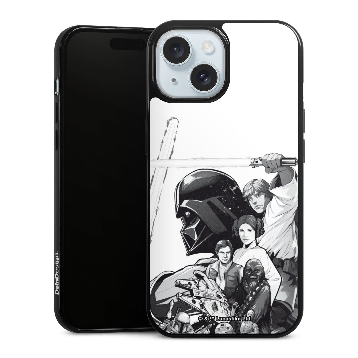 Darth Vader, C3PO, R2D2 und Meister Yoda findest Du in unserem Star Wars Shop auf DeinDesign. Natürlich gibt es auch Star Wars Handyhüllen mit den legendären Charakteren Luke Skywalker, Prinzessin Leia und Han Solo, den Helden der ersten Saga. Wer jedoch die Hauptfiguren der neuen Star Wars Filme ins Herz geschlossen hat, kann auch Finn und Rey mit ihren mächtigen Waffen auf der Rückseite seines Smartphones haben. Die vielseitigen Schutzhüllen in verschiedenen Ausführungen sind das perfekte Geschenk für alle Star Wars Fans, die ihrem Smartphone eine individuelle Note verleihen wollen.