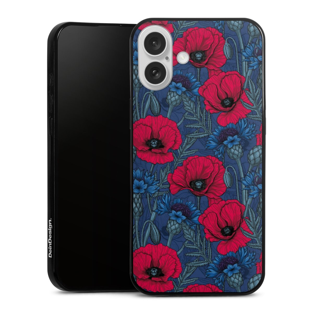 Mohnblumen und Kornblumen auf Blau