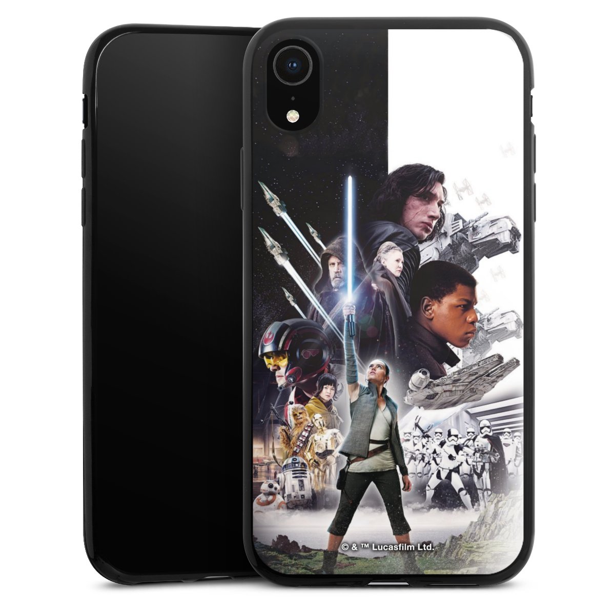 Darth Vader, C3PO, R2D2 und Meister Yoda findest Du in unserem Star Wars Shop auf DeinDesign. Natürlich gibt es auch Star Wars Handyhüllen mit den legendären Charakteren Luke Skywalker, Prinzessin Leia und Han Solo, den Helden der ersten Saga. Wer jedoch die Hauptfiguren der neuen Star Wars Filme ins Herz geschlossen hat, kann auch Finn und Rey mit ihren mächtigen Waffen auf der Rückseite seines Smartphones haben. Die vielseitigen Schutzhüllen in verschiedenen Ausführungen sind das perfekte Geschenk für alle Star Wars Fans, die ihrem Smartphone eine individuelle Note verleihen wollen.