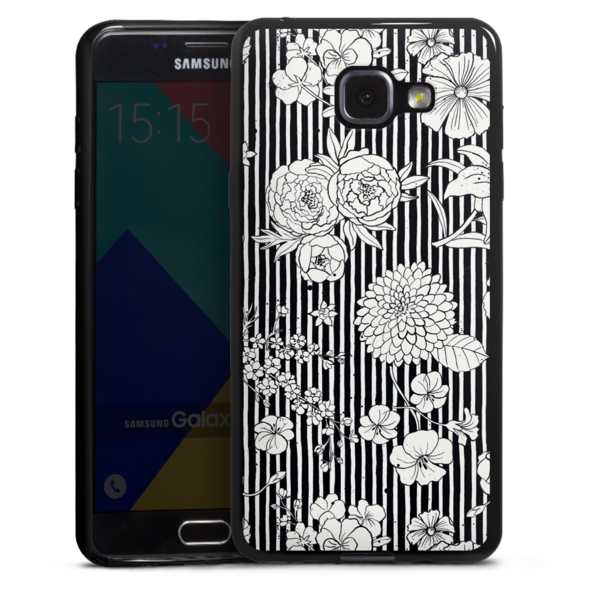 Blumen und Streifen Schwarz und Weiß