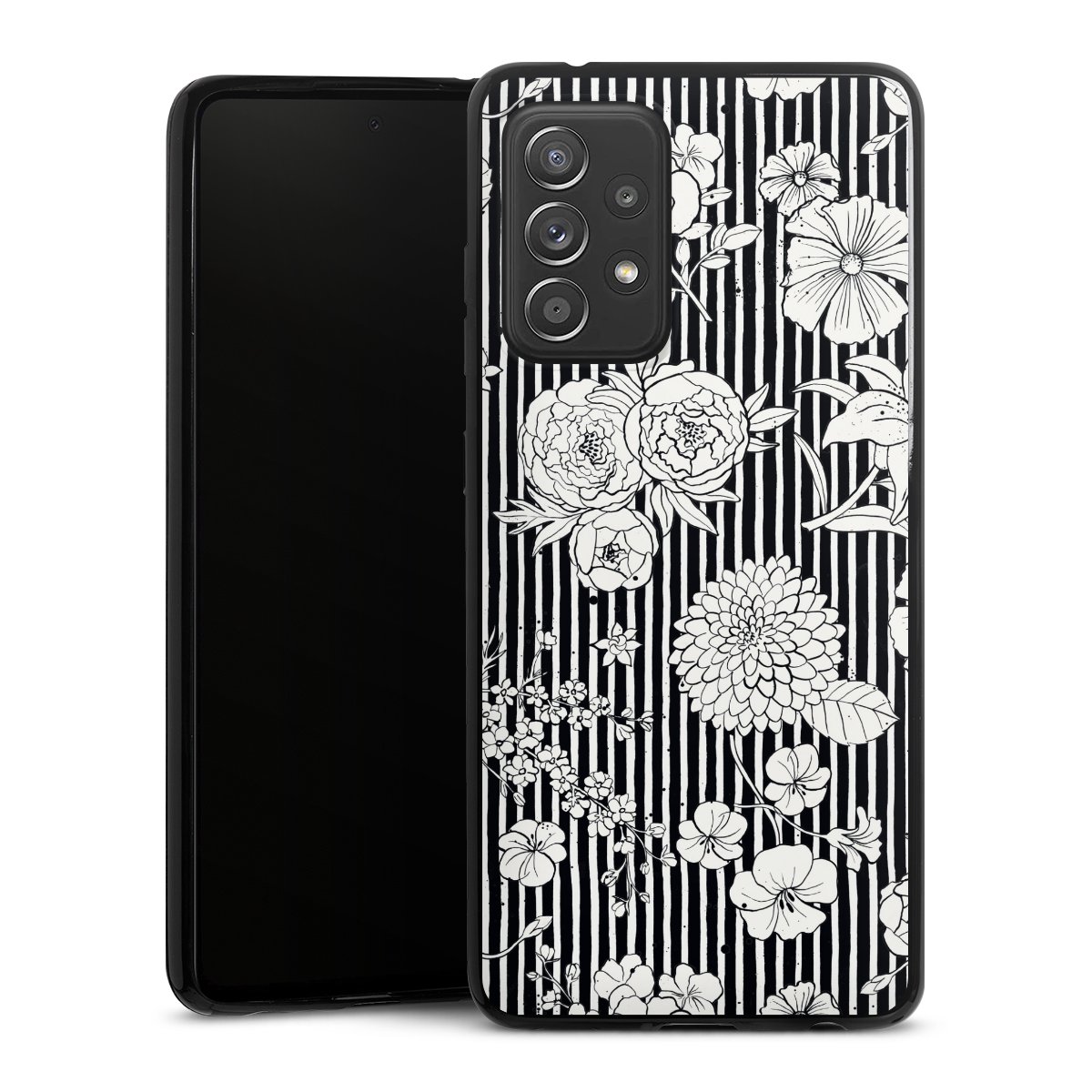 Blumen und Streifen Schwarz und Weiß