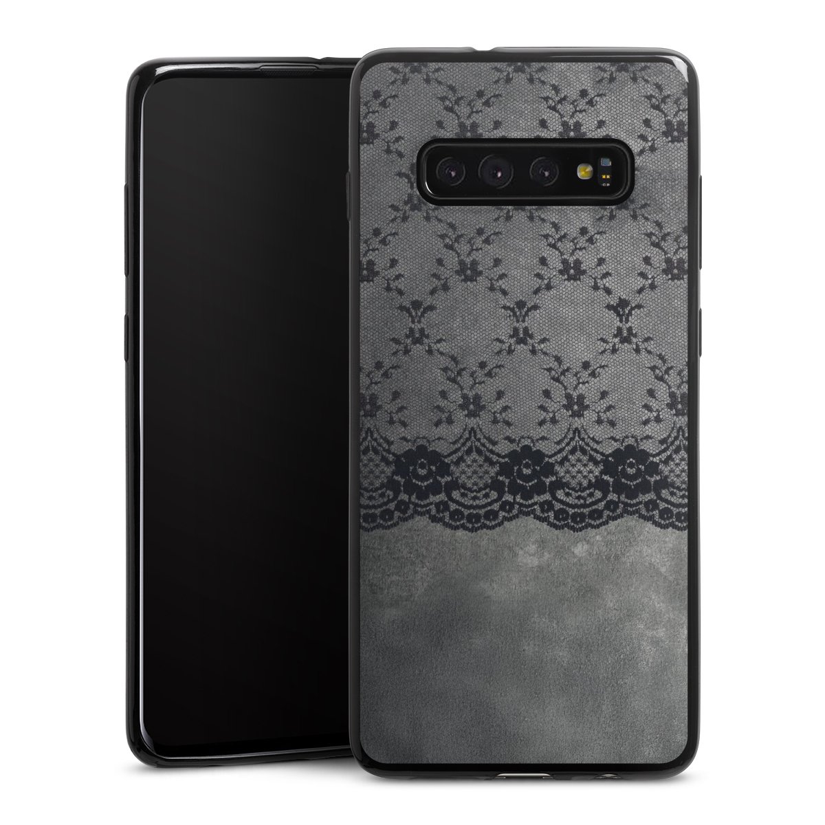 Schwarzes Spitzenmuster auf grauem Hintergrund