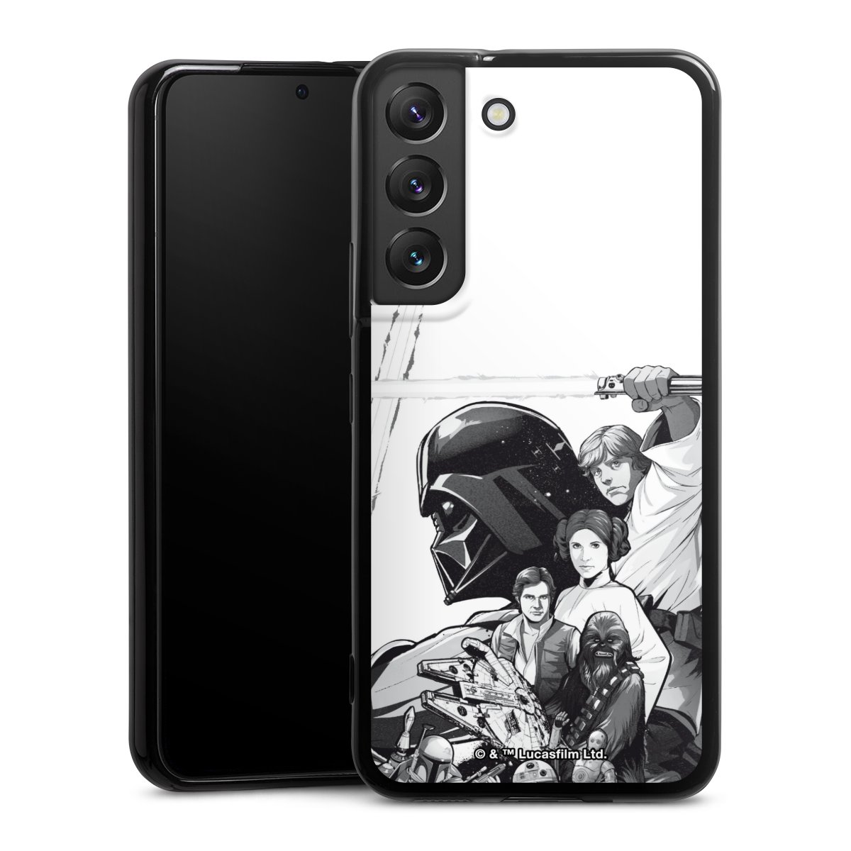 Darth Vader, C3PO, R2D2 und Meister Yoda findest Du in unserem Star Wars Shop auf DeinDesign. Natürlich gibt es auch Star Wars Handyhüllen mit den legendären Charakteren Luke Skywalker, Prinzessin Leia und Han Solo, den Helden der ersten Saga. Wer jedoch die Hauptfiguren der neuen Star Wars Filme ins Herz geschlossen hat, kann auch Finn und Rey mit ihren mächtigen Waffen auf der Rückseite seines Smartphones haben. Die vielseitigen Schutzhüllen in verschiedenen Ausführungen sind das perfekte Geschenk für alle Star Wars Fans, die ihrem Smartphone eine individuelle Note verleihen wollen.