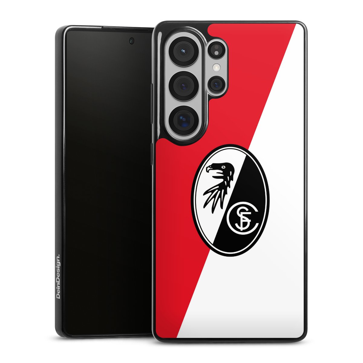 Bei DeinDesign kannst Du Dir eine individuelle SC-Freiburg-Handyhülle aussuchen, auf der das stilvolle schwarz-weiße Logo mit dem Greifenkopf zu sehen ist. Durch eine solche Hülle erhält Dein Smartphone ein unverkennbar individuelles Design. Der SC-Freiburg-Shop bietet lizensierte Fanartikel für alle Fans der Breisgau-Brasilianer.