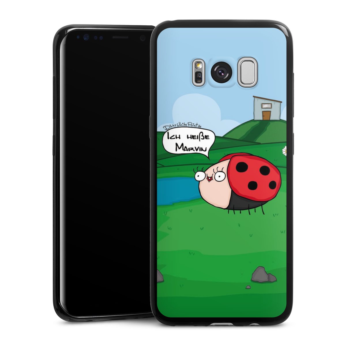 Ob Du Dich nun für Marvin, Günther das Schaf oder doch lieber für die dauerbekiffte Cannabiene entscheidest. Mit einem Motiv von DirtyWhitePaint wird Dein Smartphonen selbst zum Comic.