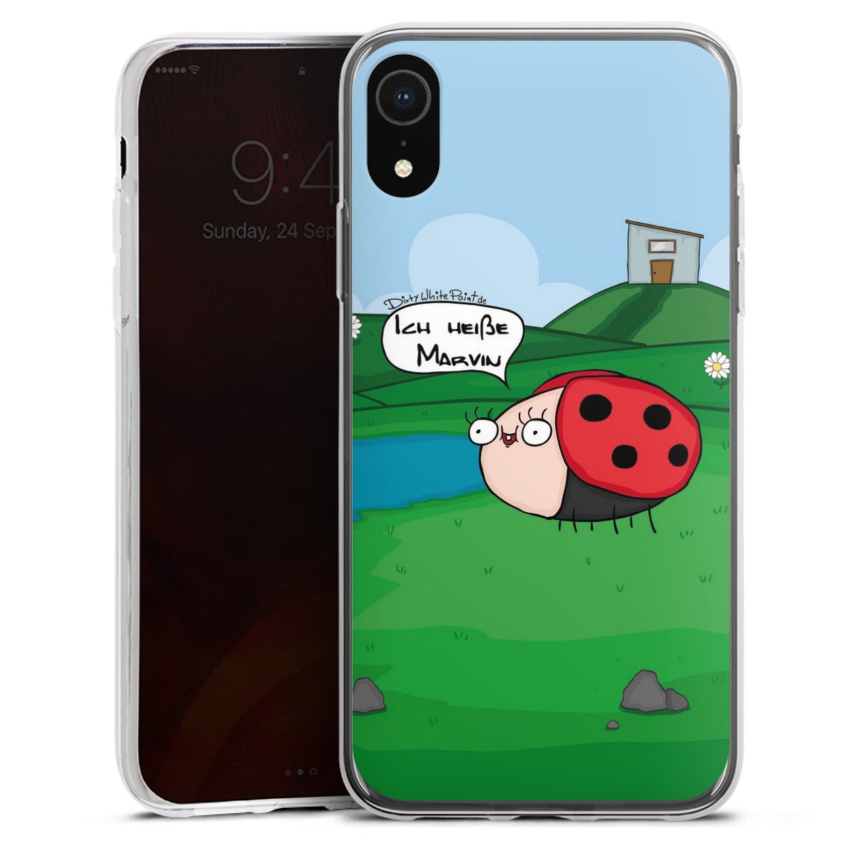 Ob Du Dich nun für Marvin, Günther das Schaf oder doch lieber für die dauerbekiffte Cannabiene entscheidest. Mit einem Motiv von DirtyWhitePaint wird Dein Smartphonen selbst zum Comic.